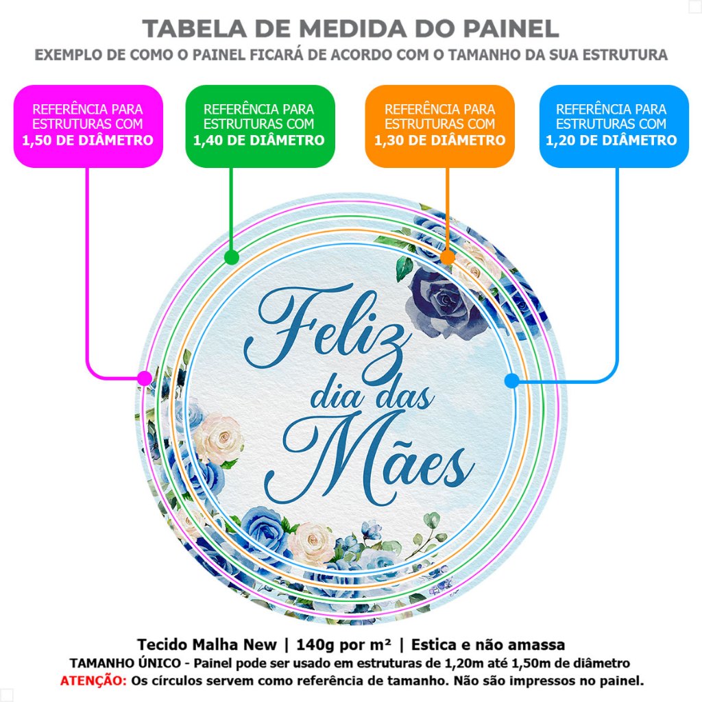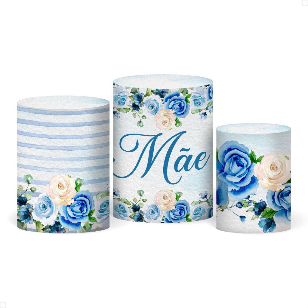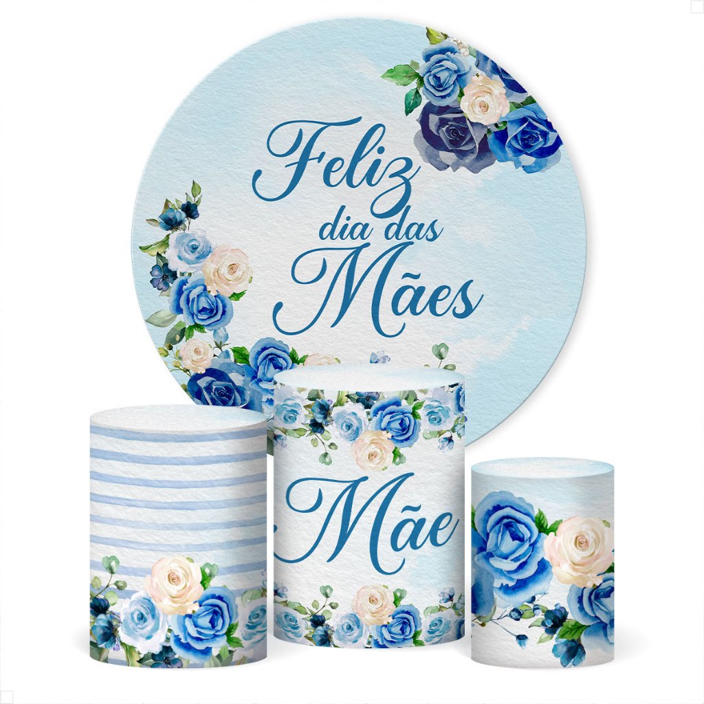 Decoração Dia das Mães: Kit Capa Painel Redondo Dia das Mães e Cilindro para Festa Veste Fácil Sublimada