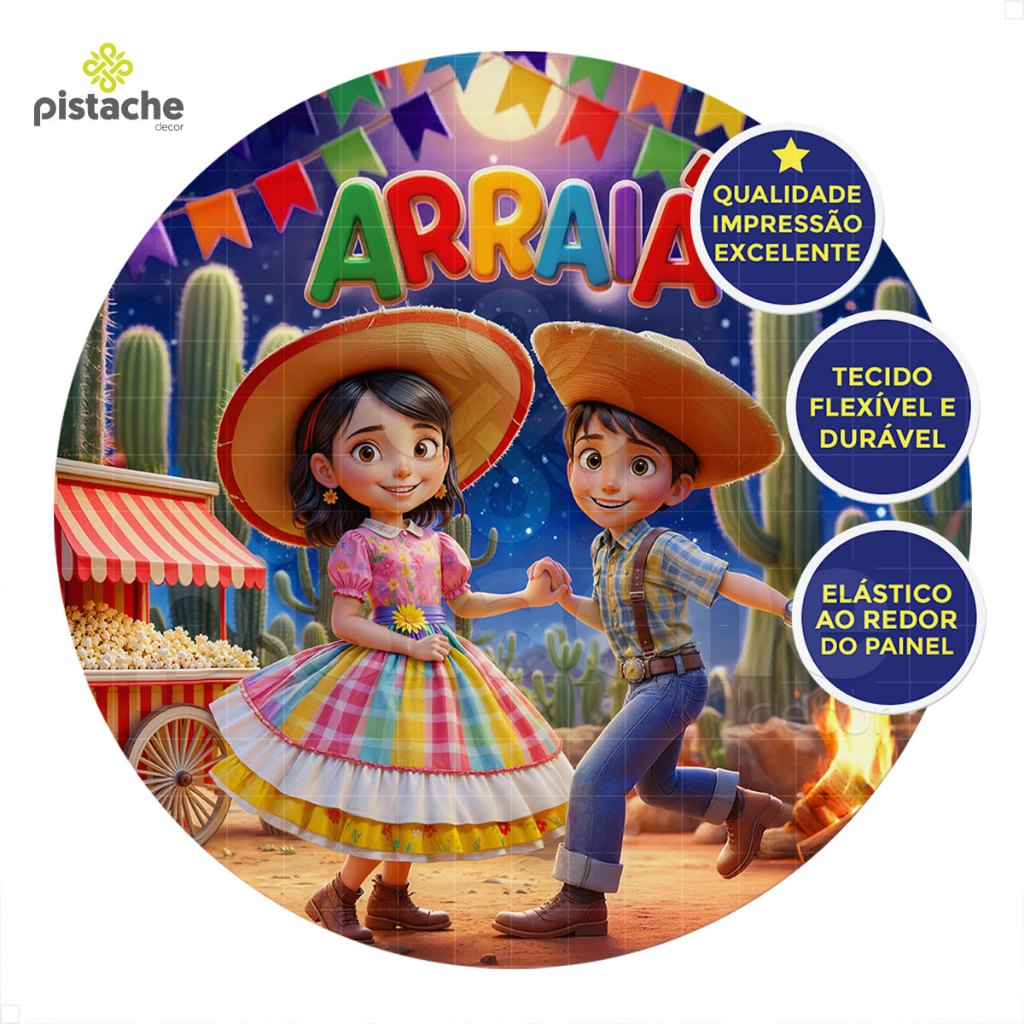 Capa Painel Redondo Decoração Festa Junina 1,50m Tecido Sublimado C/Elástico – APR-2559