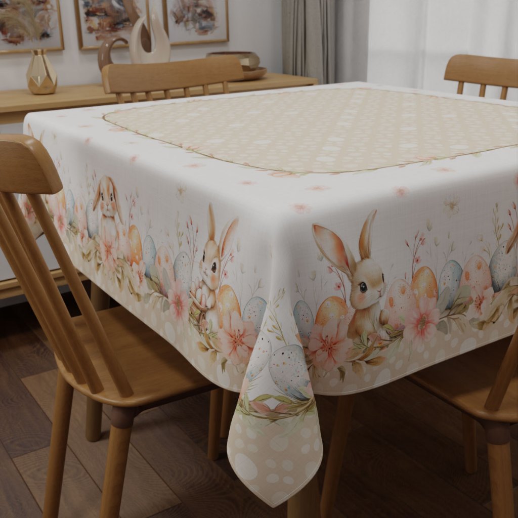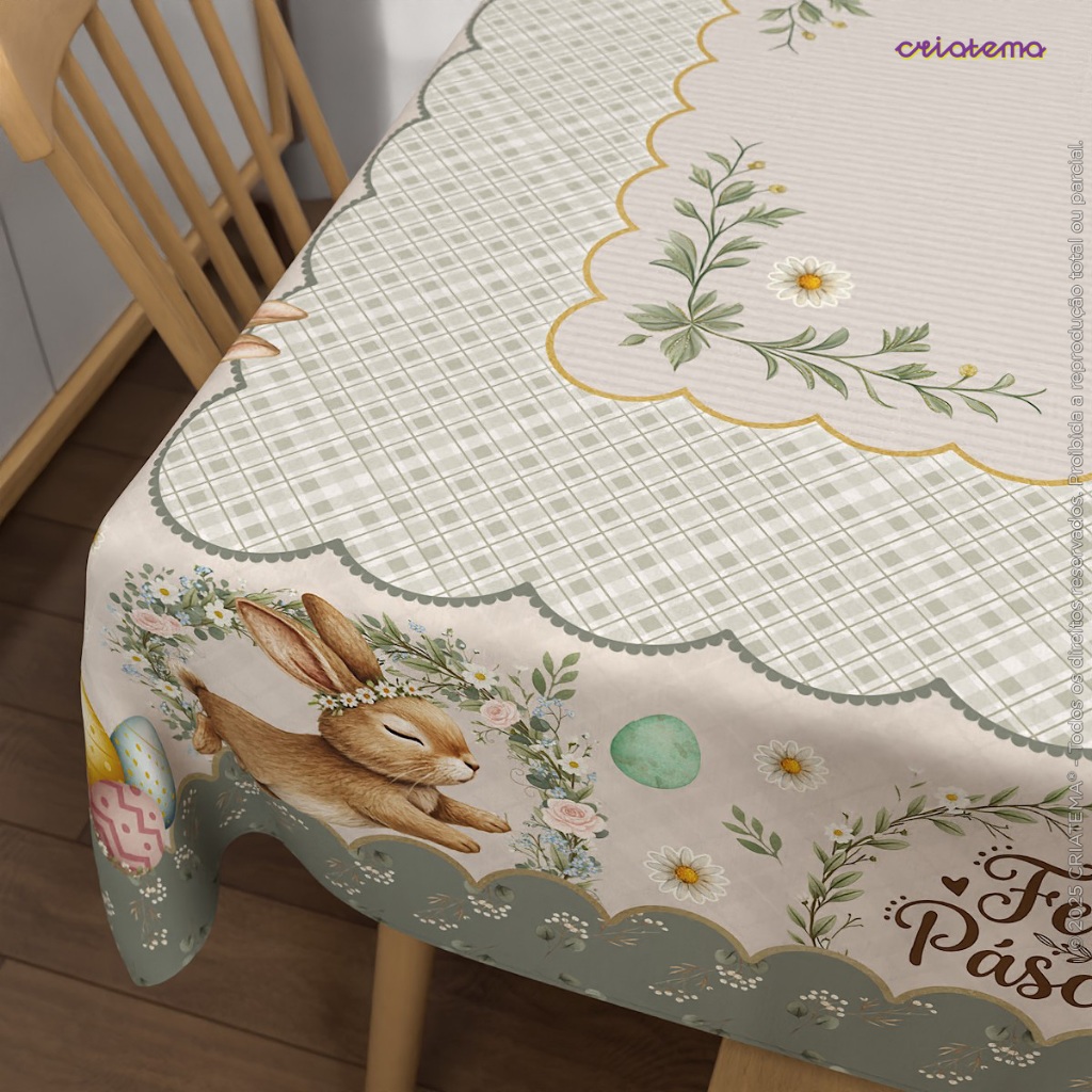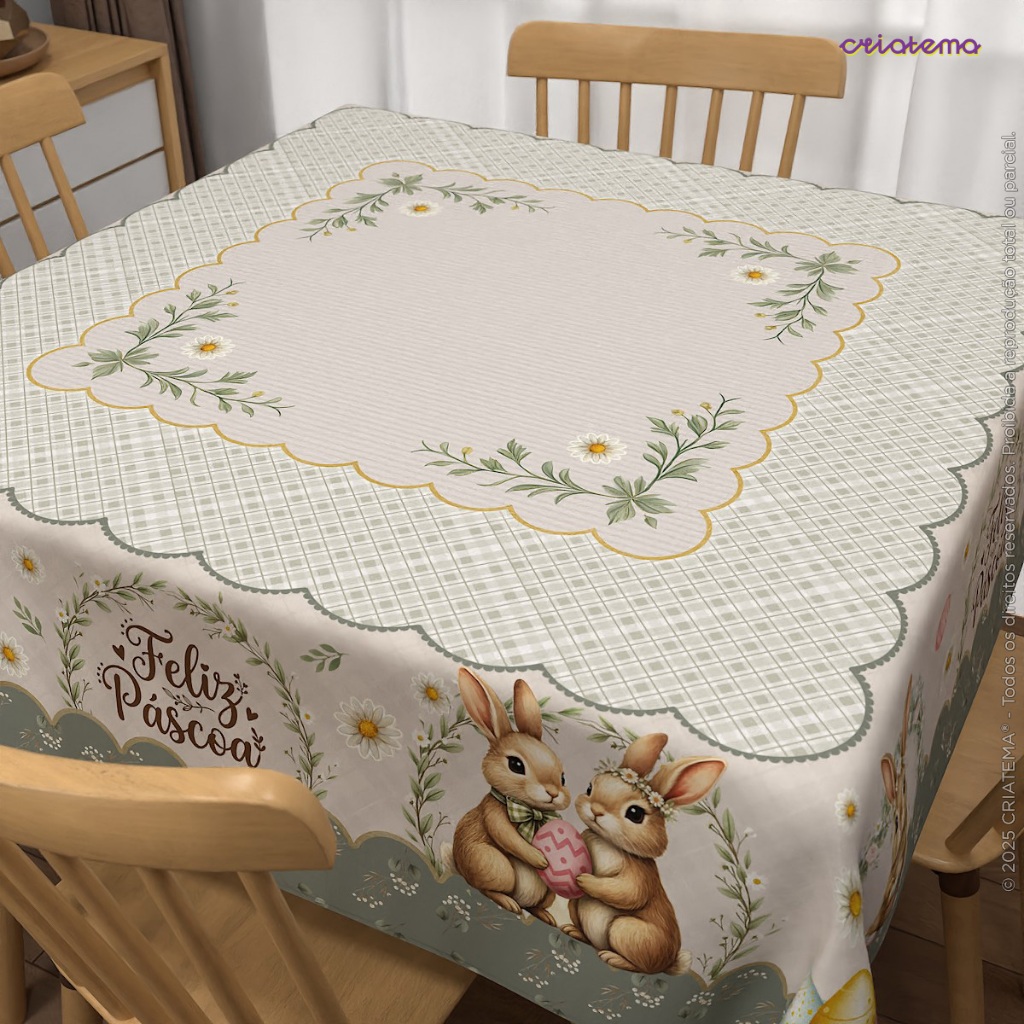 Toalha de Mesa Quadrada Decorativa de Páscoa Mesa Posta para 4 Lugares 1,40x1,40m