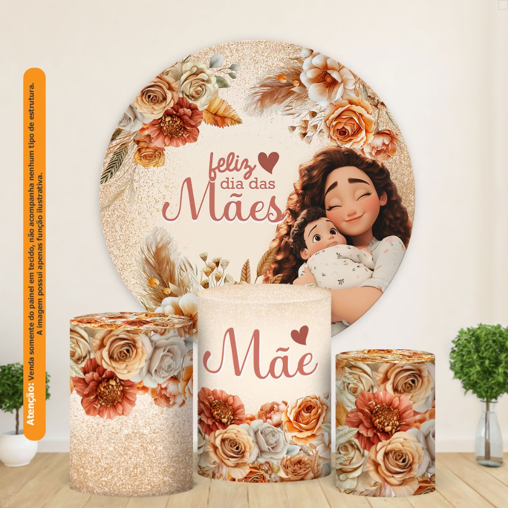 Painel Redondo Com Trio Capa de Cilindro Decoração Dia das Mães Sublimada Veste Fácil – K-603