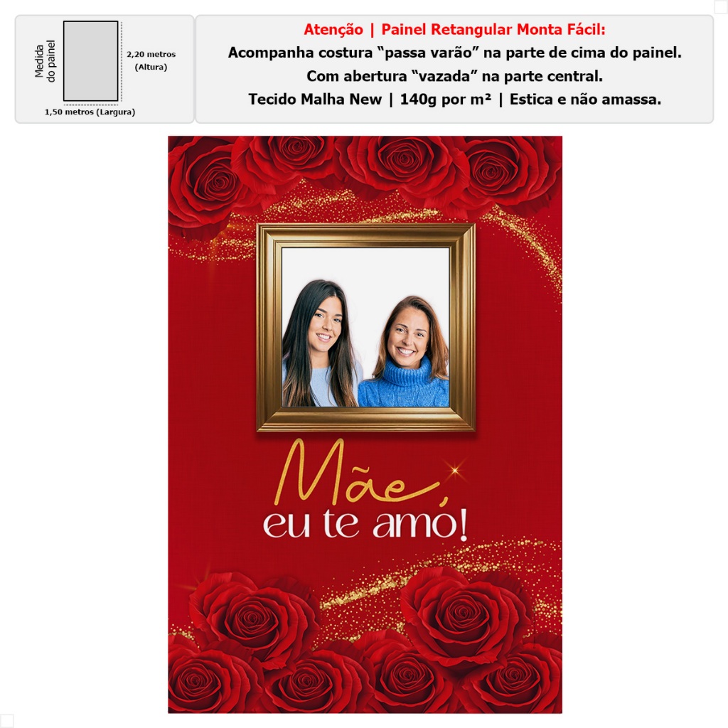 Painel Retangular Interativo Dia das Mães Decoração Vazado Sublimado Em Tecido 1,50x2,20m para Festa