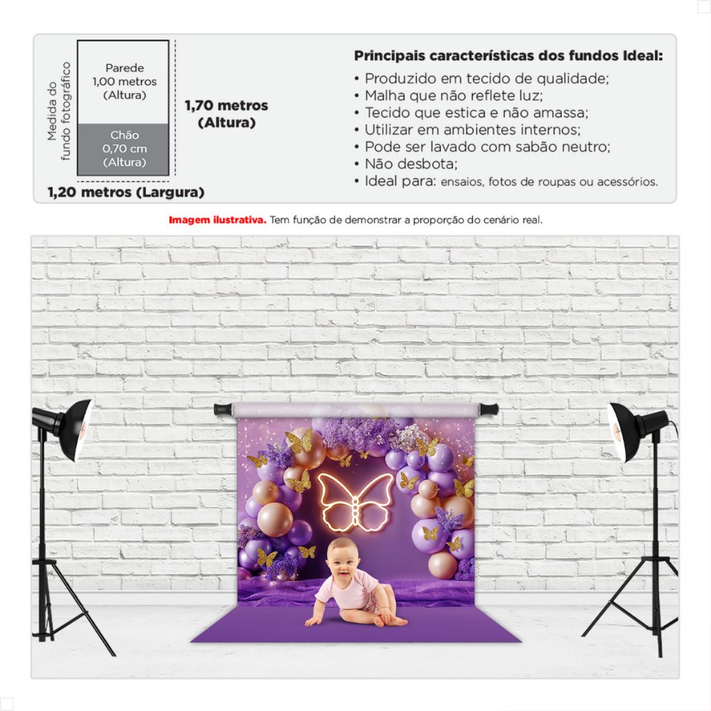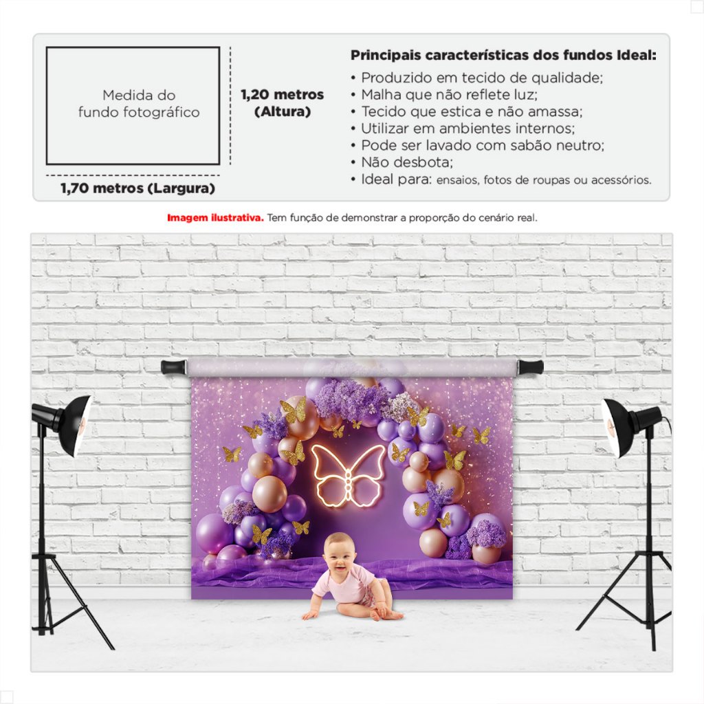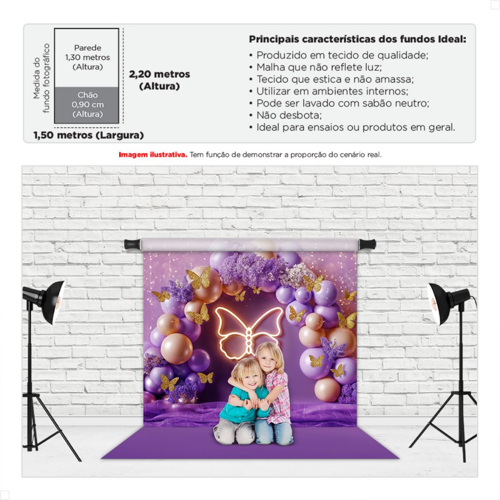 Fundo Fotográfico Dia das Crianças Borboleta Painel de Fotos Infantil Tecido Sublimado - FFC-930