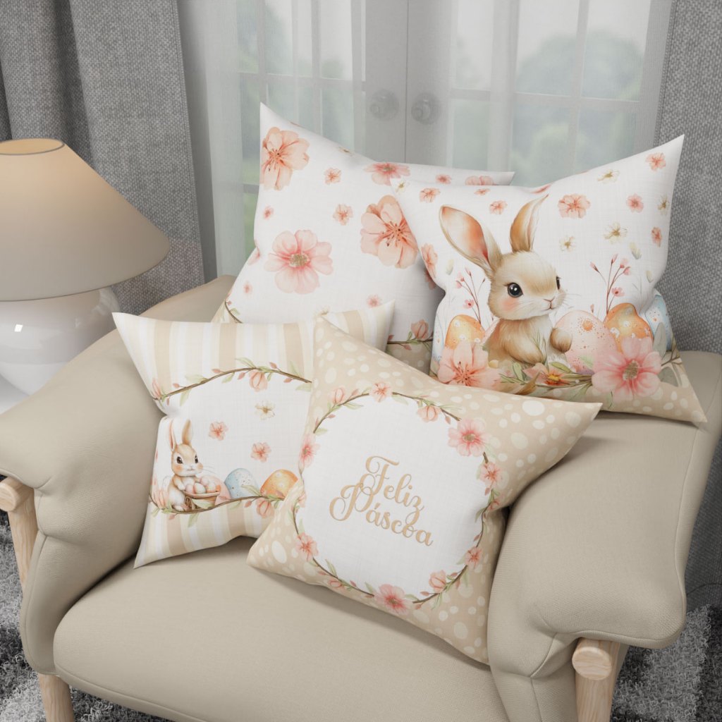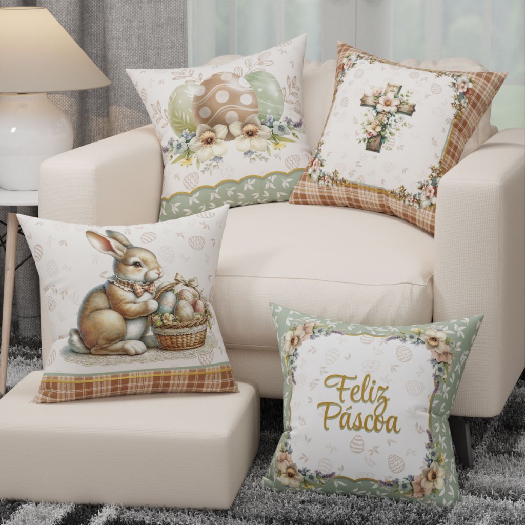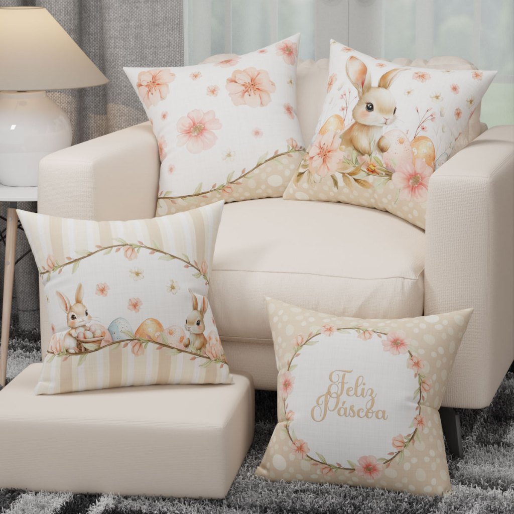 Kit 04 Capa de Almofada Páscoa Com Zíper Decoração 45x45cm Em Oxford