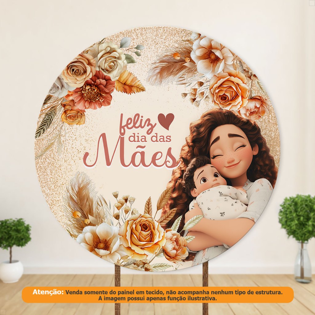 Capa Painel Redondo Dia das Mães C/Elástico Sublimado Em Tecido 1,50x1,50m – R-532