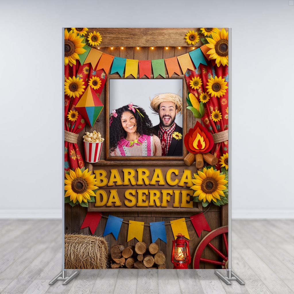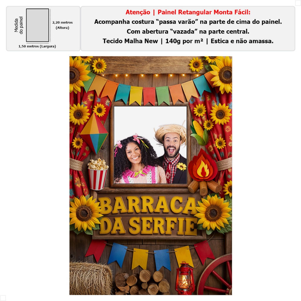 Painel Interativo Retangular Festa Junina Vazado Decoração São João Barraca da Serfie Sublimado Tecido 1,50x2,20 -INT-30