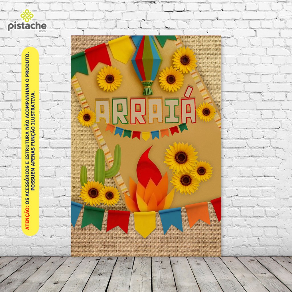Painel Festa Junina Retangular Decoração Arraiá Girassol 1,5x2,2 Tecido Sublimado 3D Vertical– V-183