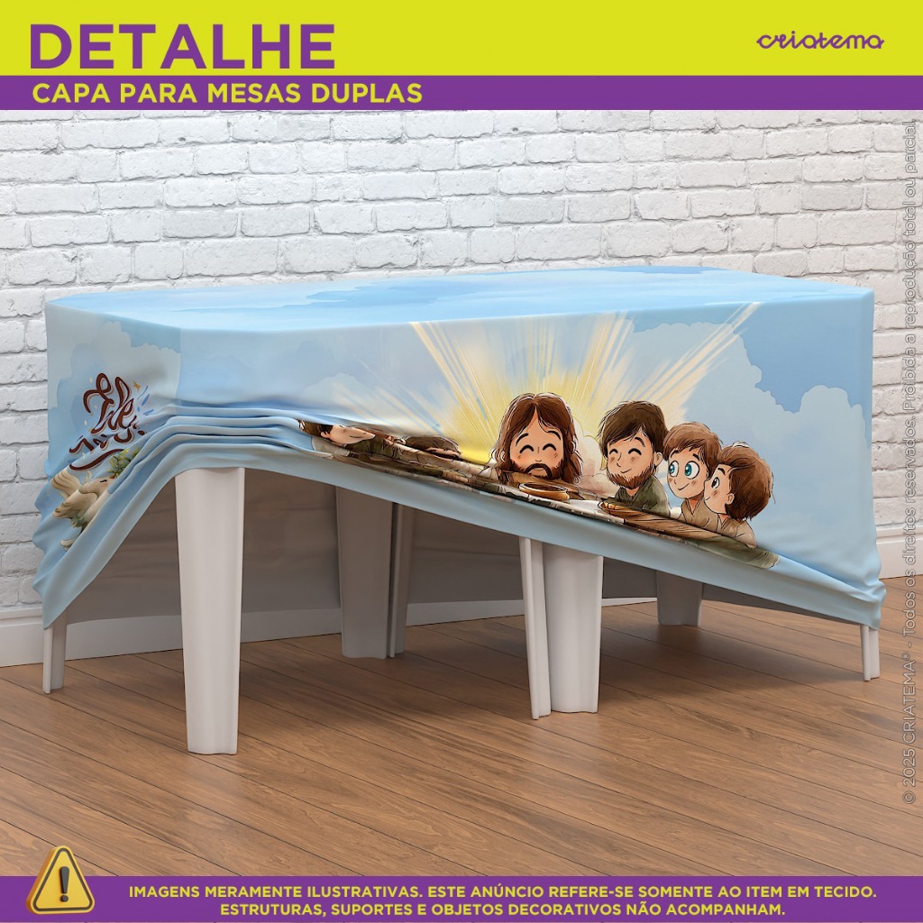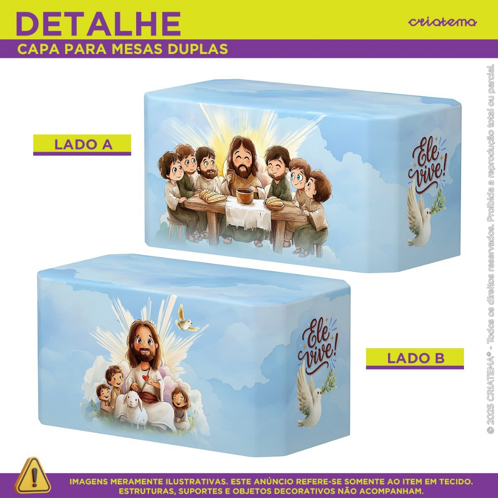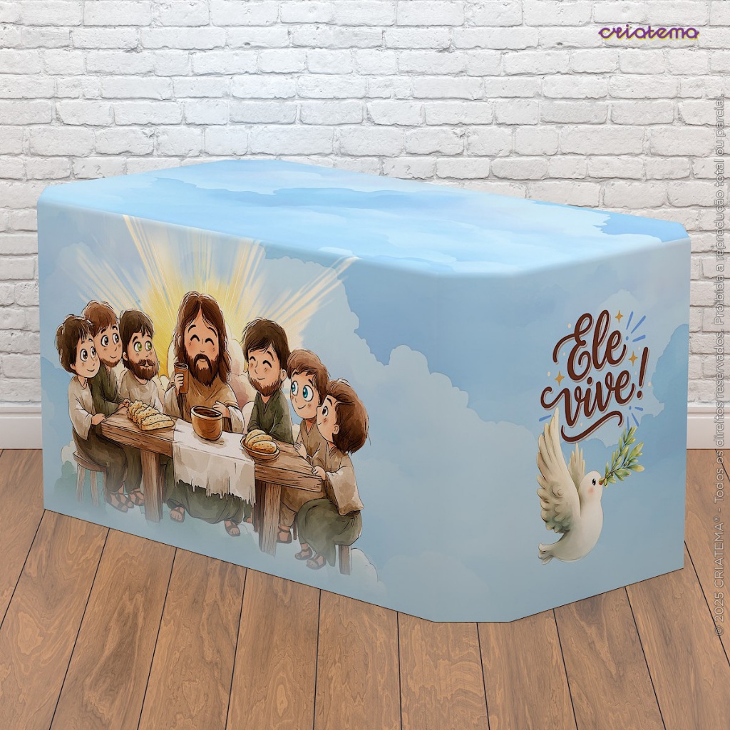 Capa de Mesa Decorativa Páscoa Religiosa Cristã Sublimado Em Tecido Forro Veste Fácil para Festa
