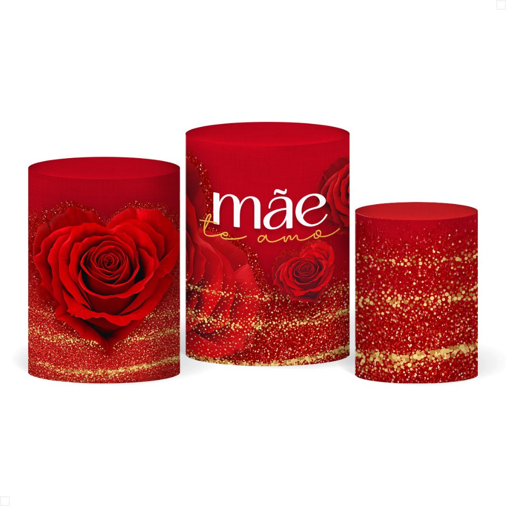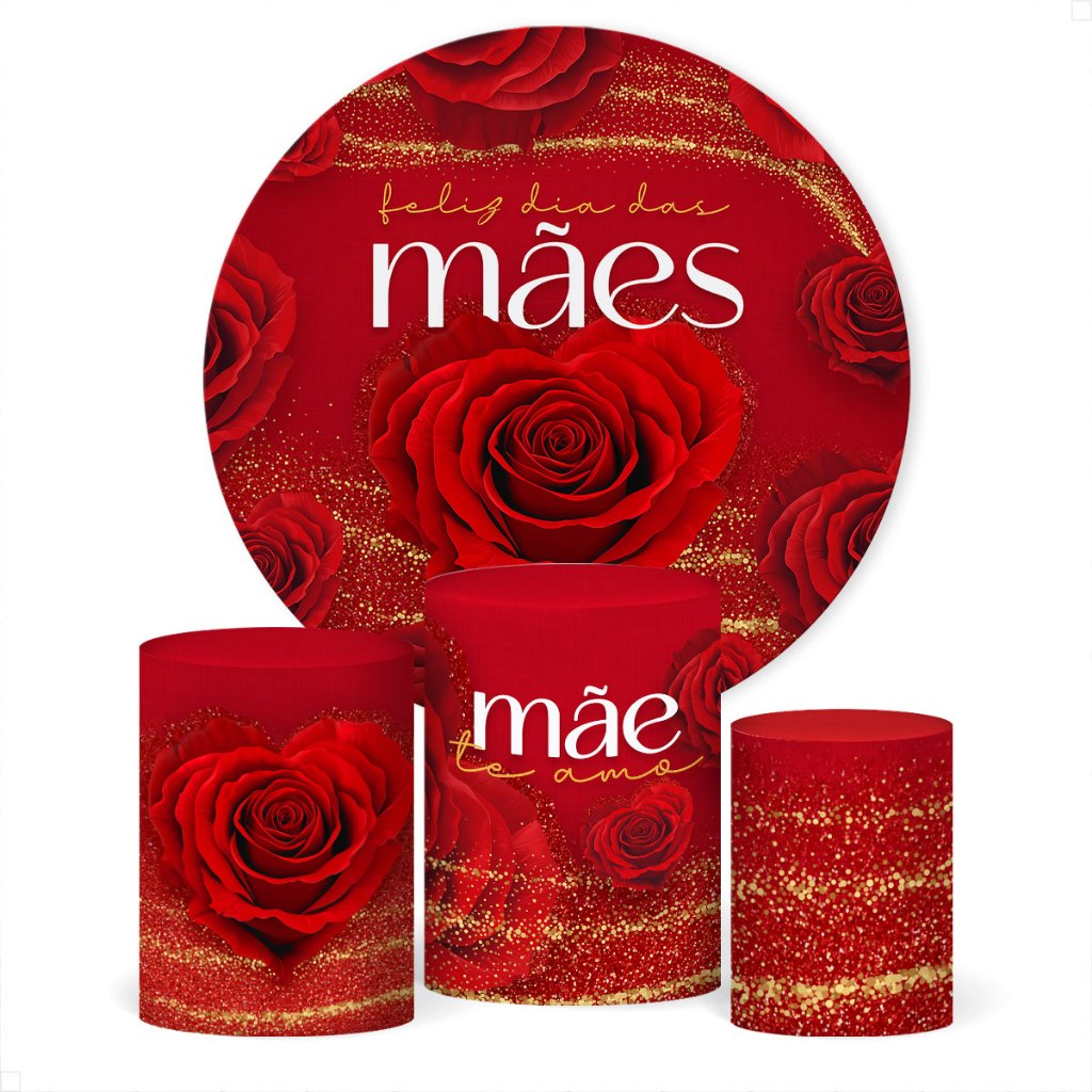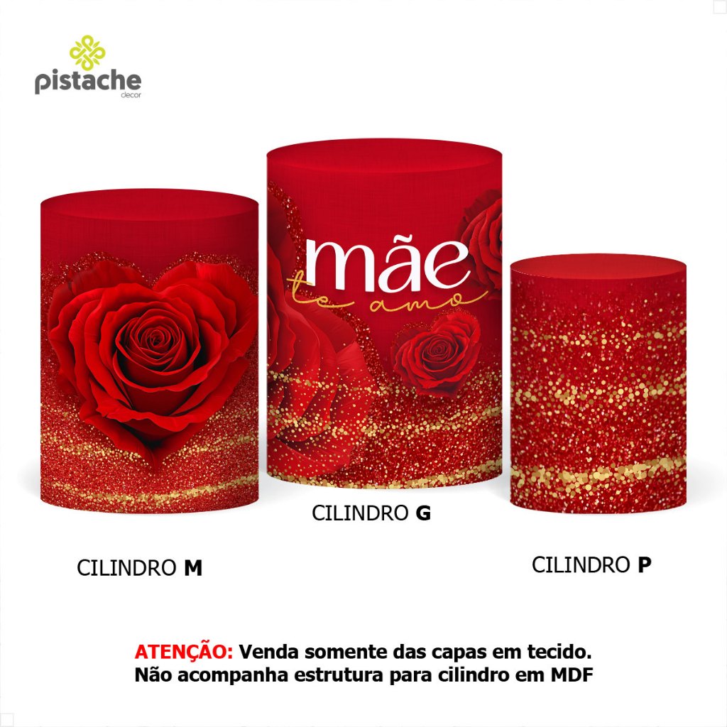 Decoração Dia das Mães: Kit Capa Cilindro e Painel Decoração Dia das Mães Veste Fácil Sublimada