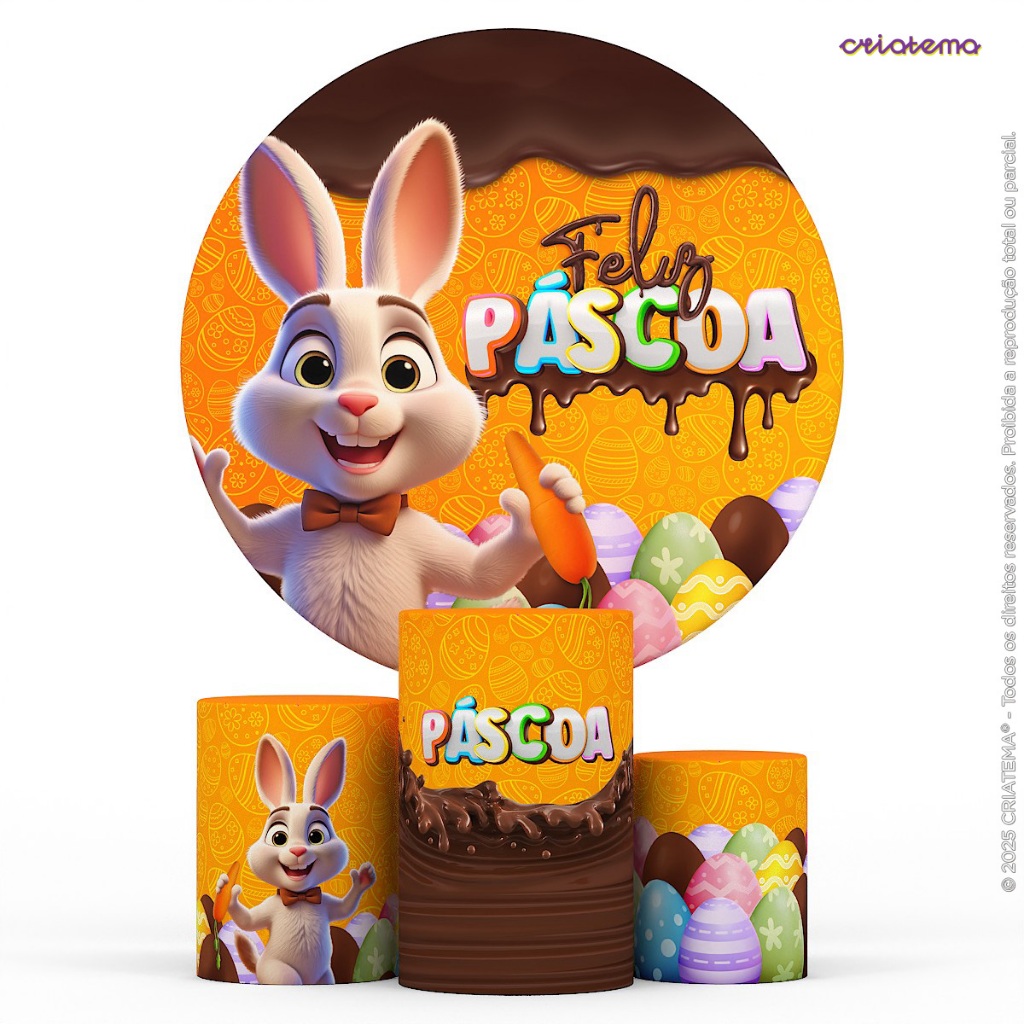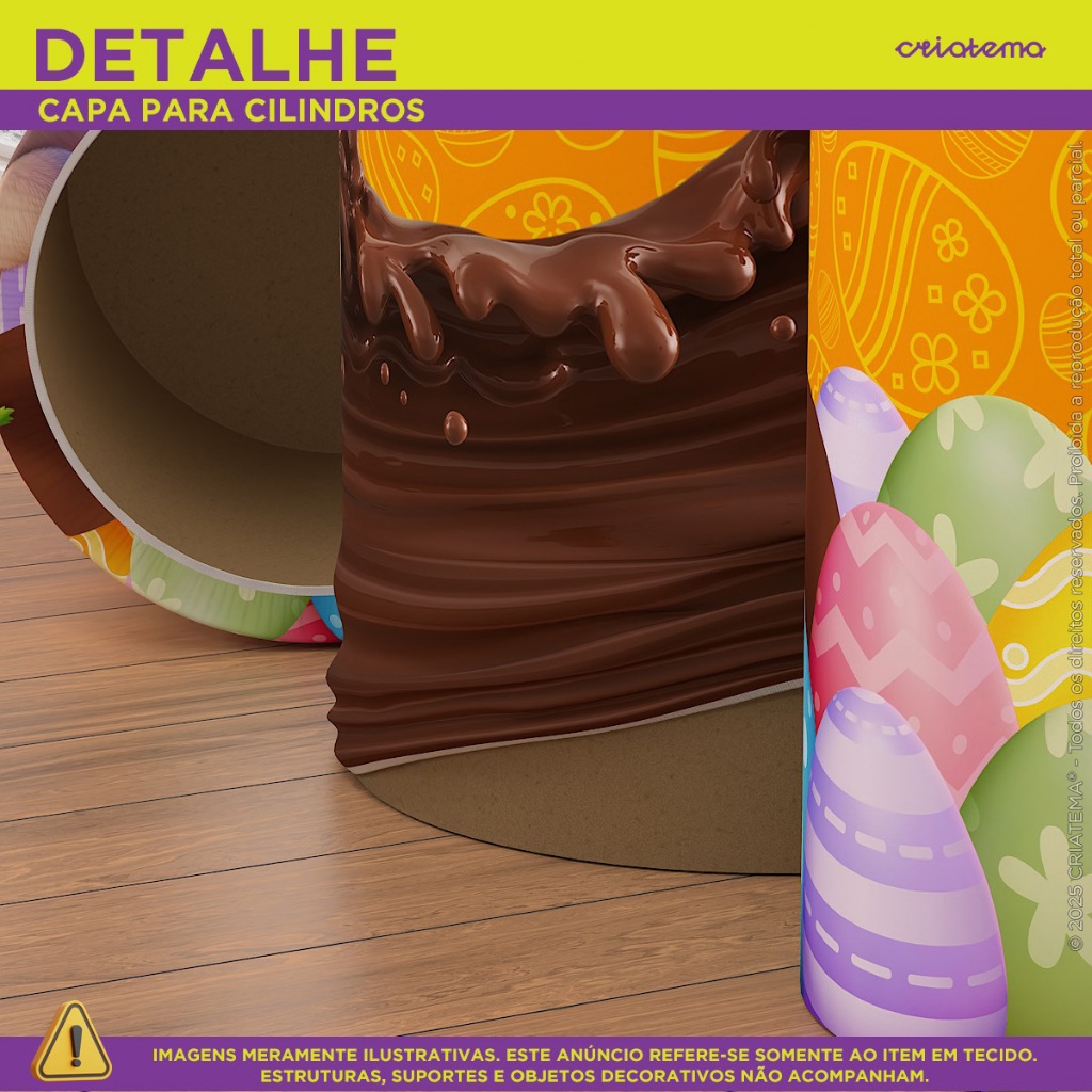 Capa Painel Redondo + Trio Capa Cilindro Decoração Páscoa Sublimado Tecido Veste Fácil Com Elástico