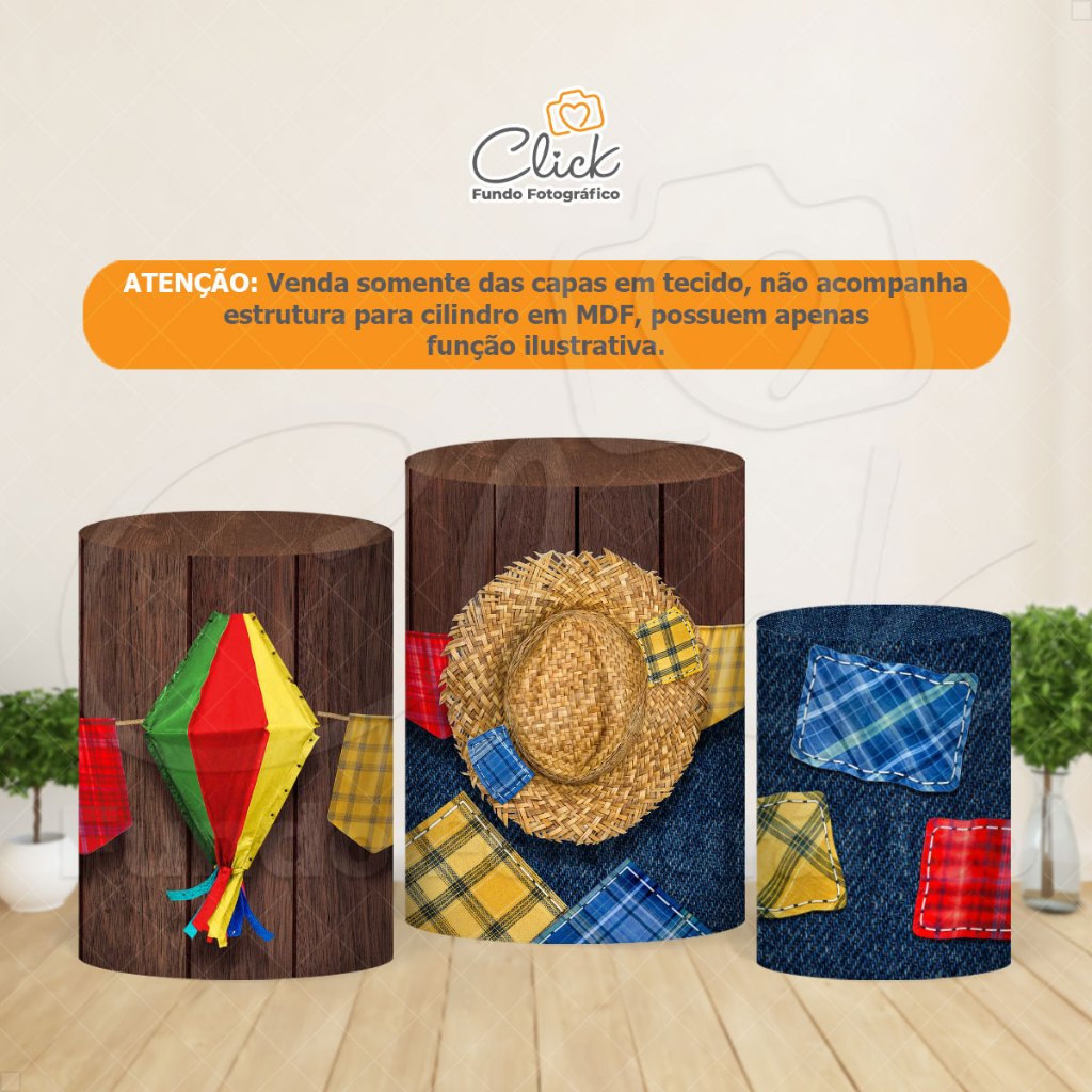 Capas De Cilindros Festa Junina Em Tecido Sublimado Veste Fácil C/Elástico 3D Decoração São João – T-247