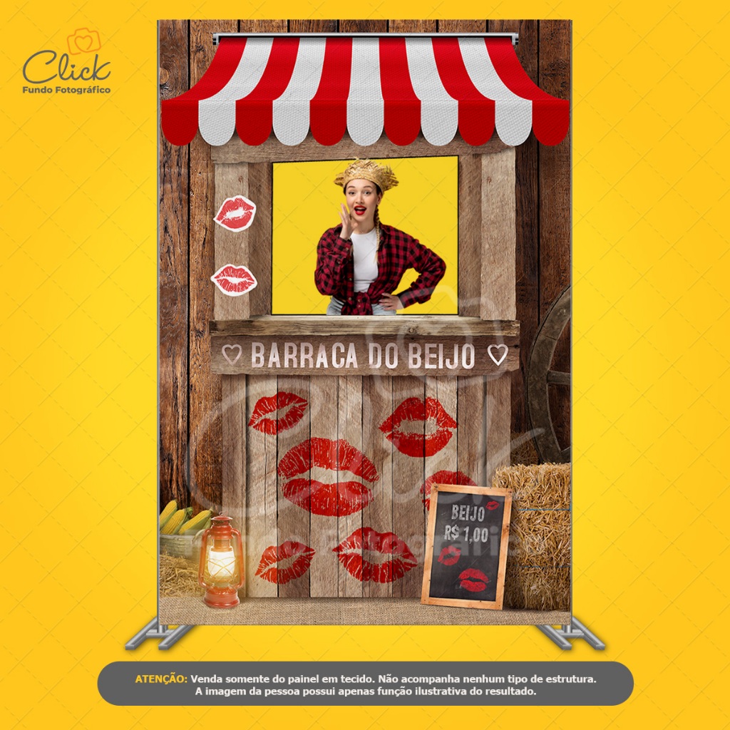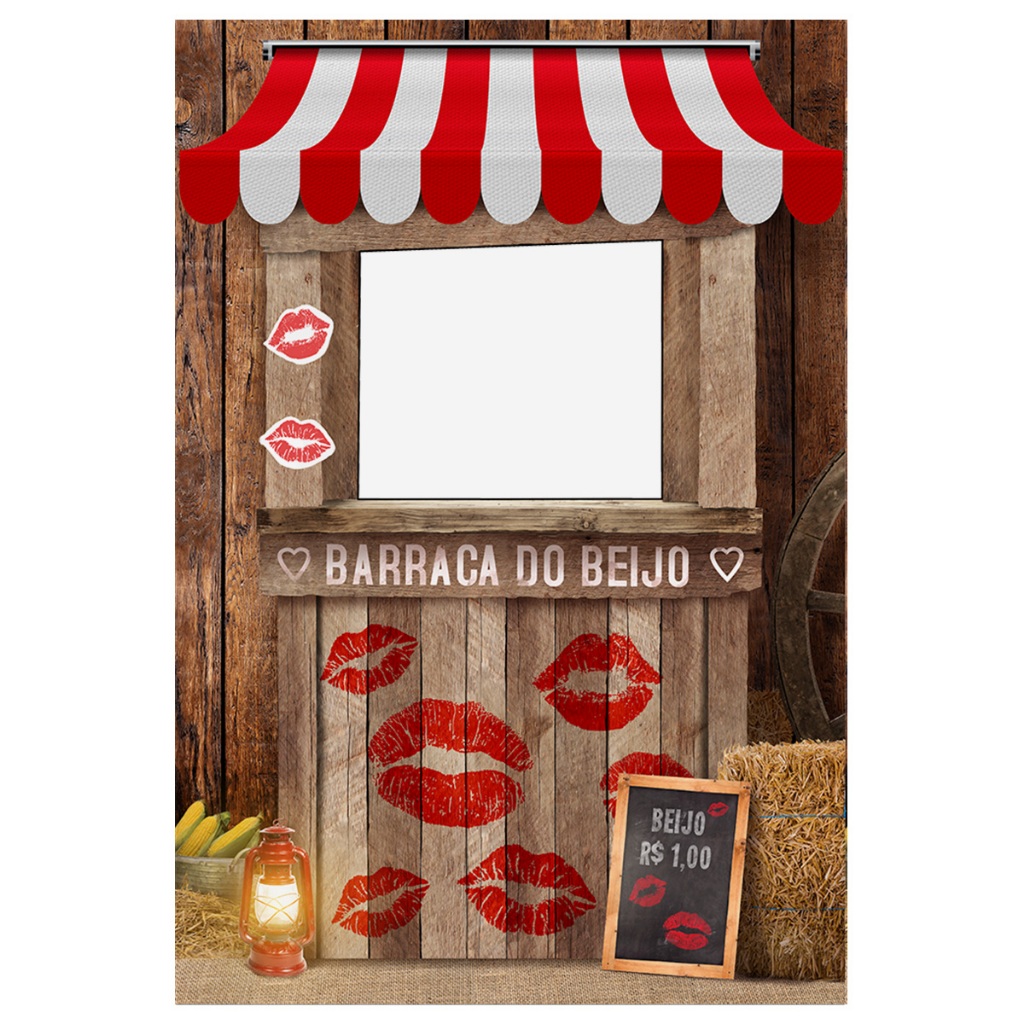 Painel Interativo Retangular Festa Junina Vazado Decoração São João Barraca do Beijo Sublimado Tecido 1,50x2,20 – V-99