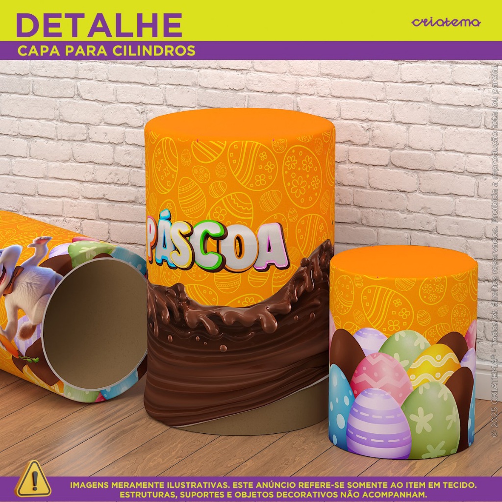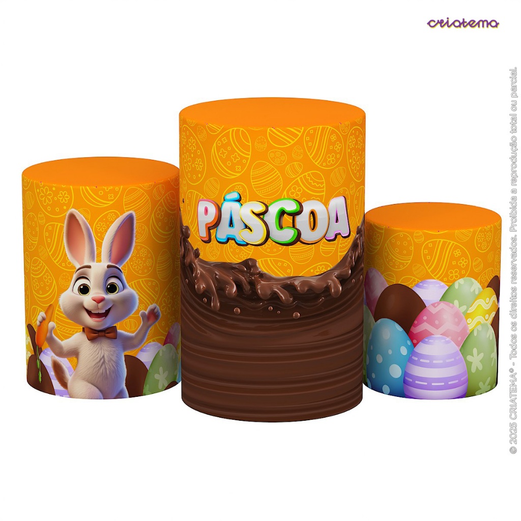 Trio Capas Cilindros Decoração Páscoa Em Tecido com Elástico Veste Fácil para Festa