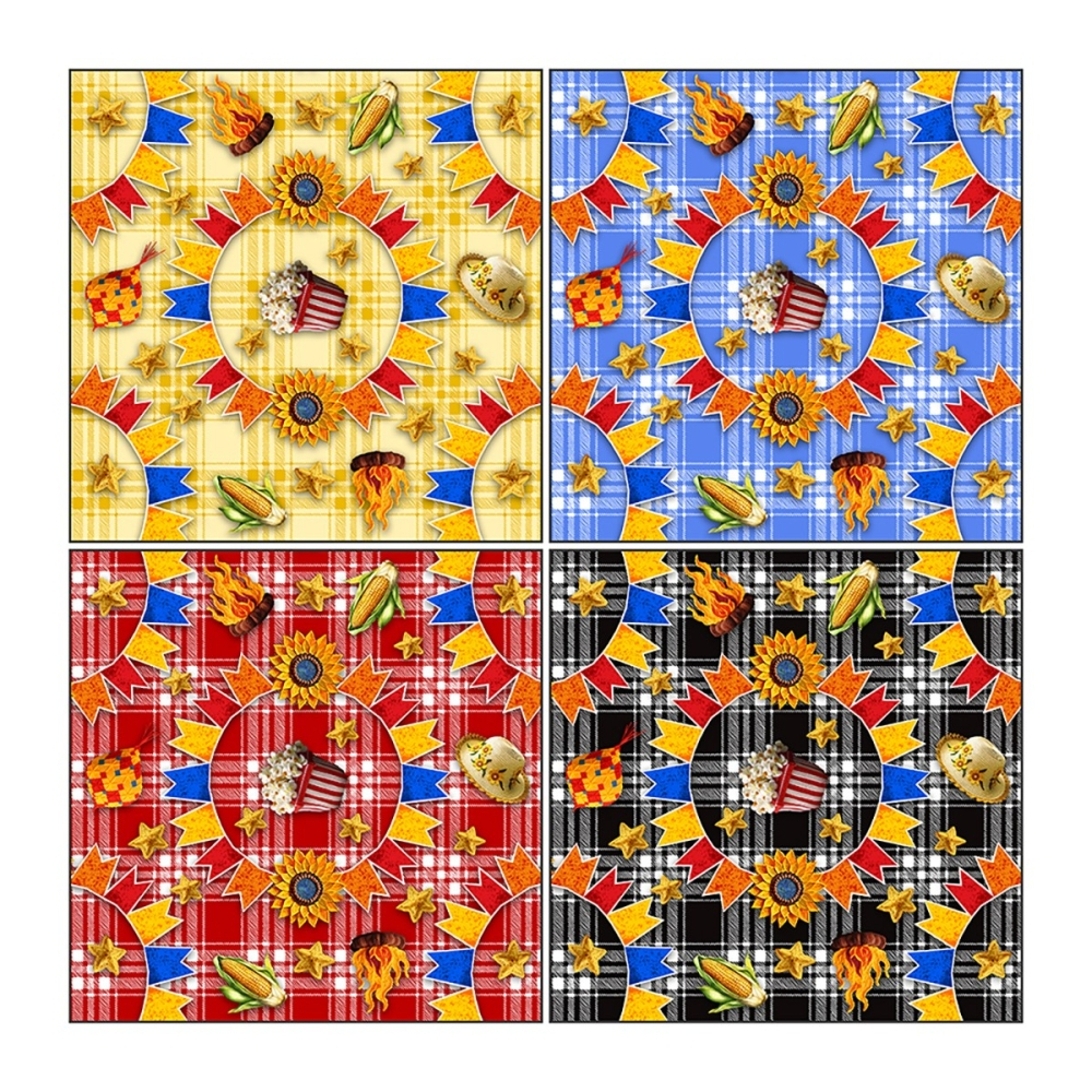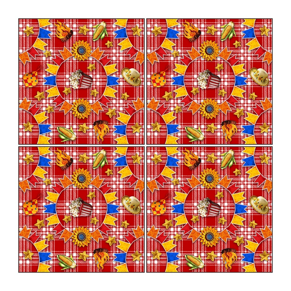 Kit 4 Toalhas de Mesa Quadrada Xadrez Festa Junina Tecido 75x75cm