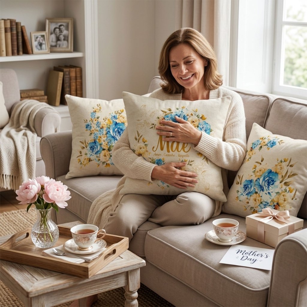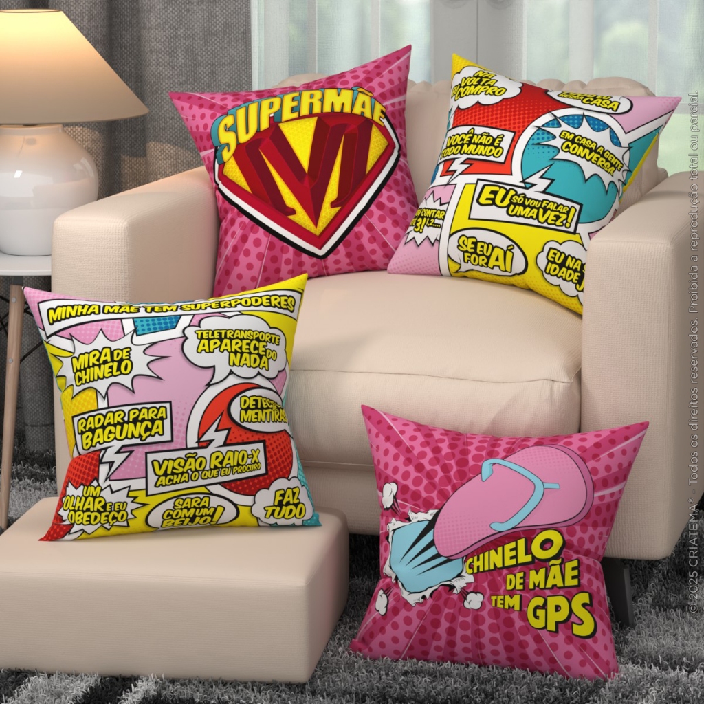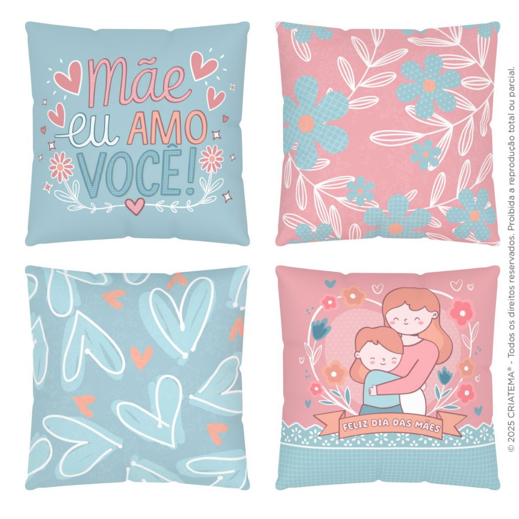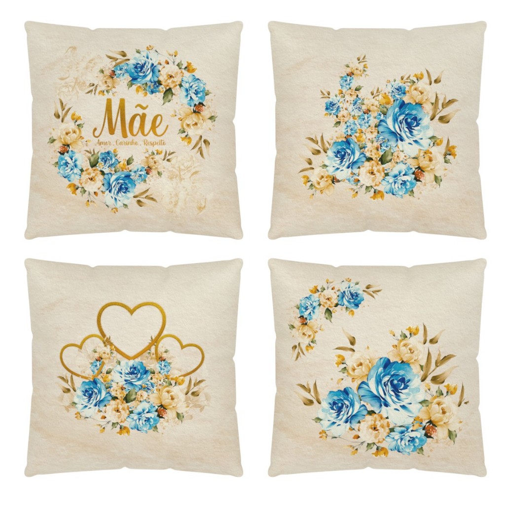 Kit Com 4 Capas de Almofada Decorativas Dia das Mães Estampadas 45x45cm Sublimado