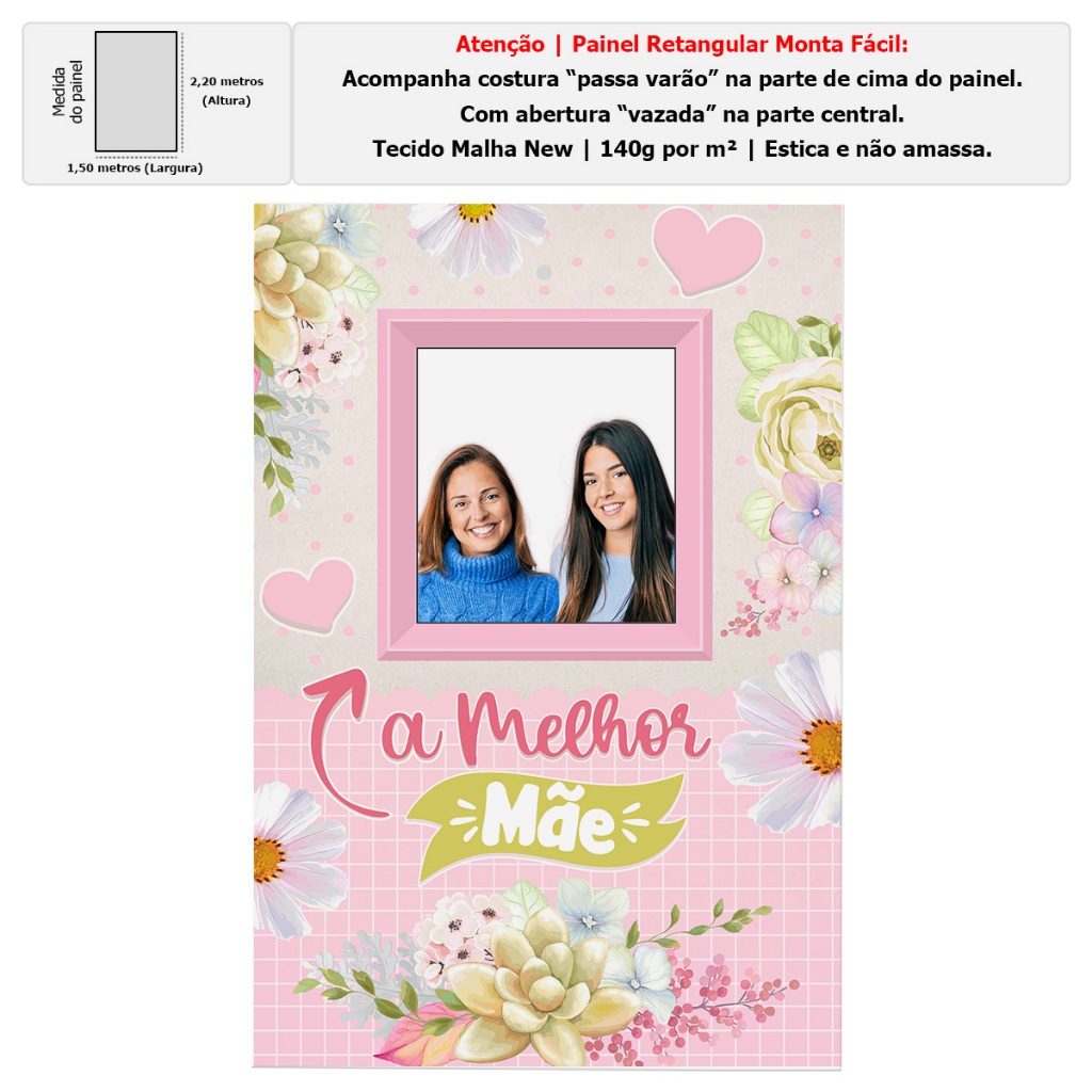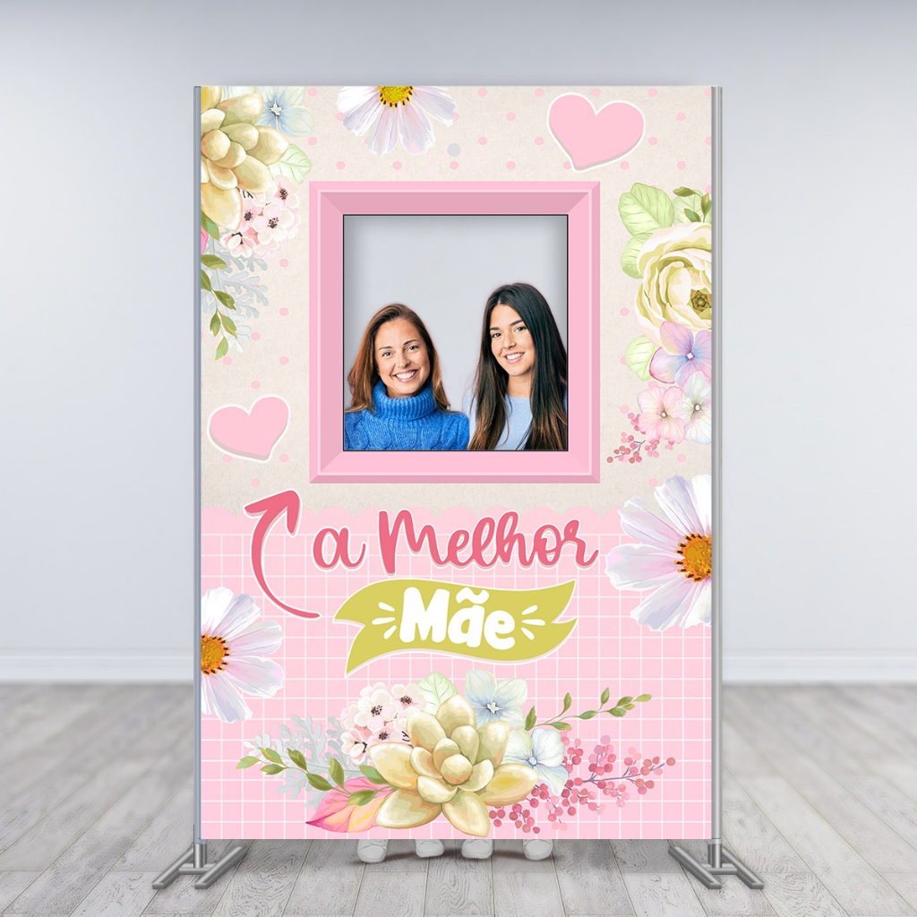 Painel Retangular Decoração Dia Das Mães para Foto Vazado Interativo Sublimado Em Tecido 1,50x2,20