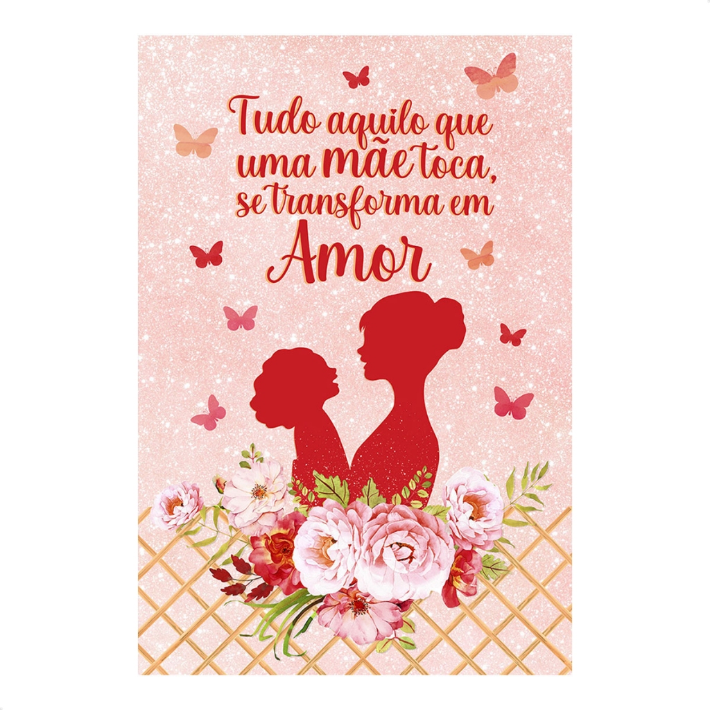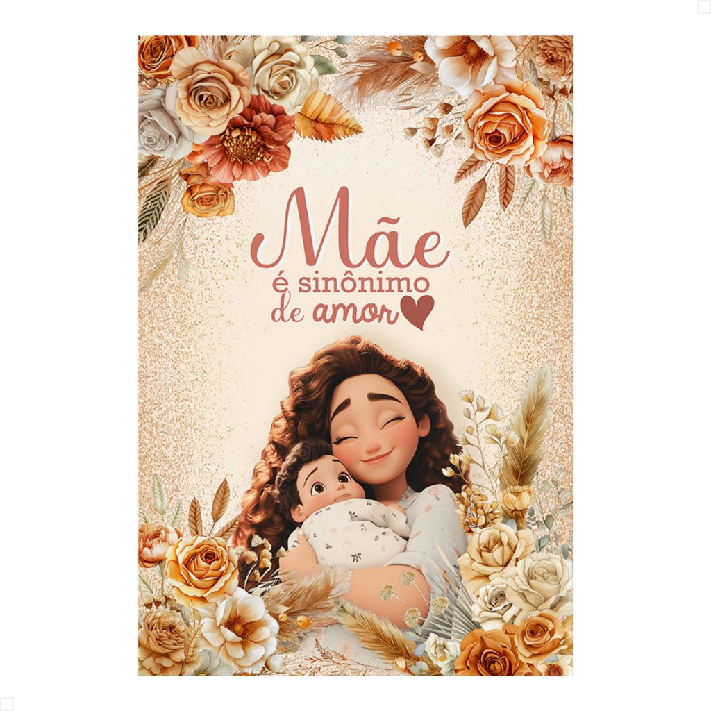 Painel Retangular Decorativo Dia das Mães Vertical Lateral de Festa Sublimado Em Tecido 1,50x2,20m