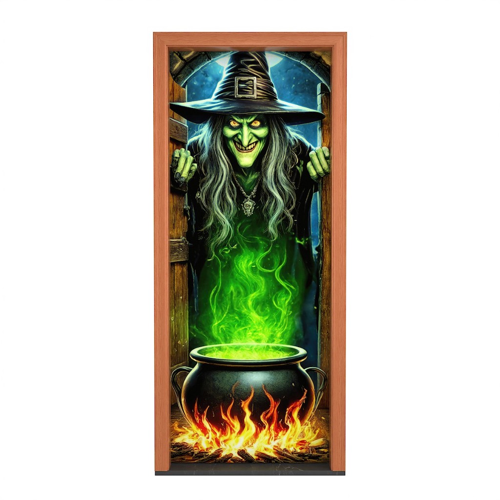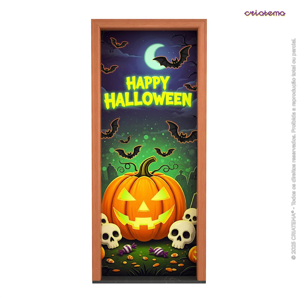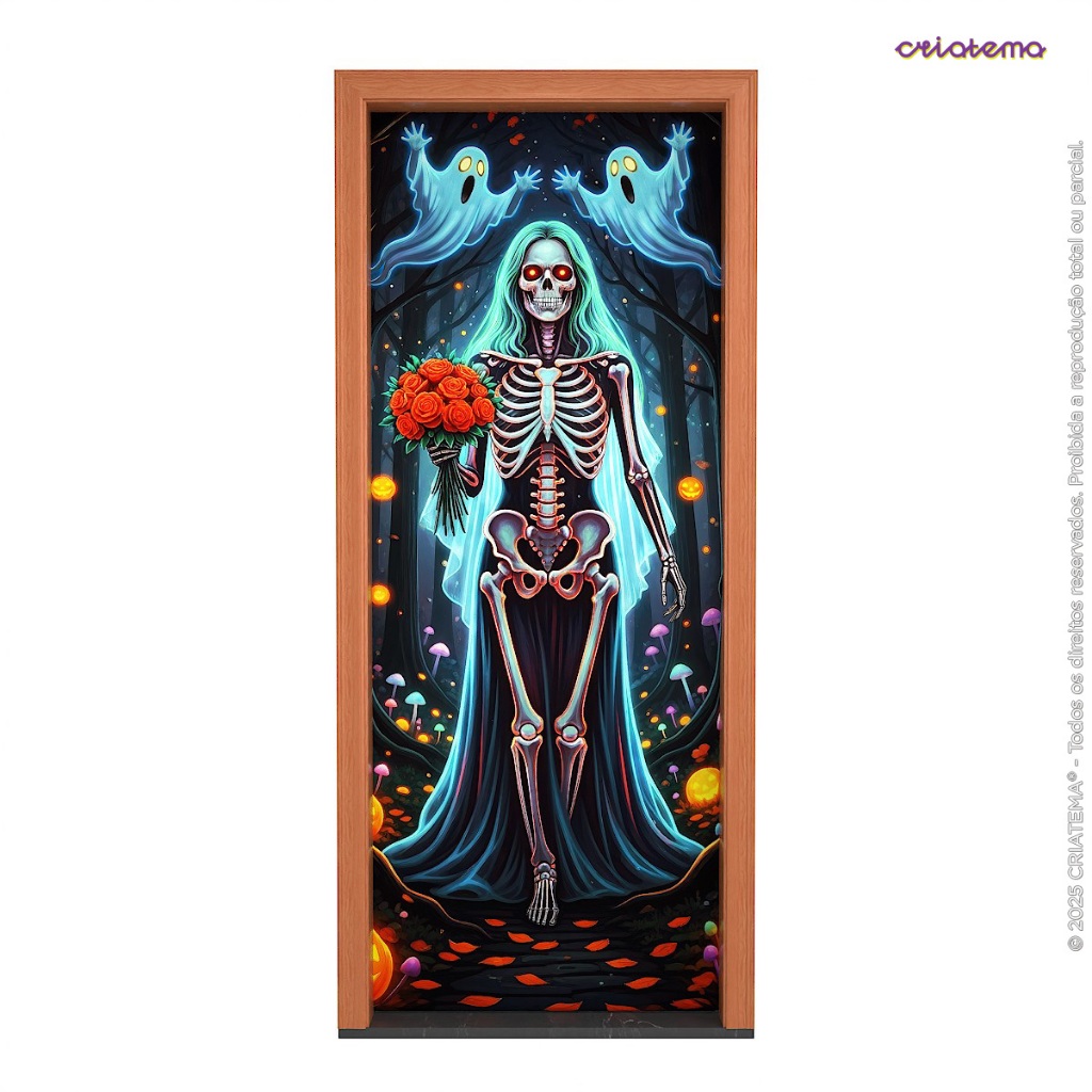 Capa de Porta Decoração Halloween 3d Neon Brilha C/ Luz Negra 3d 0,85x2,1m Tecido Sublimado C/Elástico