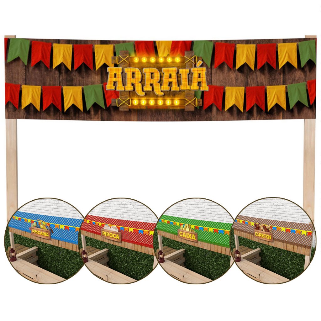 Faixa Horizontal Para Barraca Festa Junina Painel Em Tecido 2,00×0,50m Placa Arraiá Decorativa