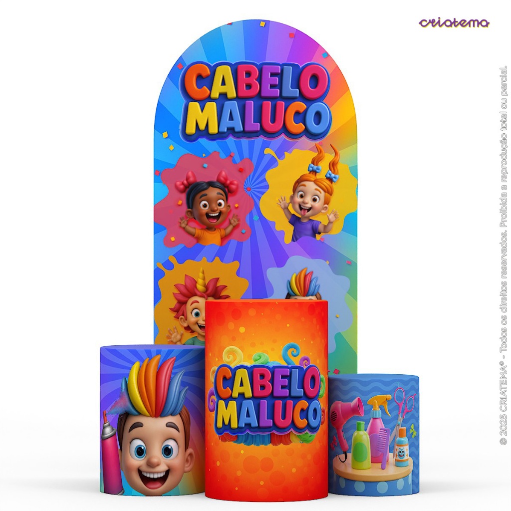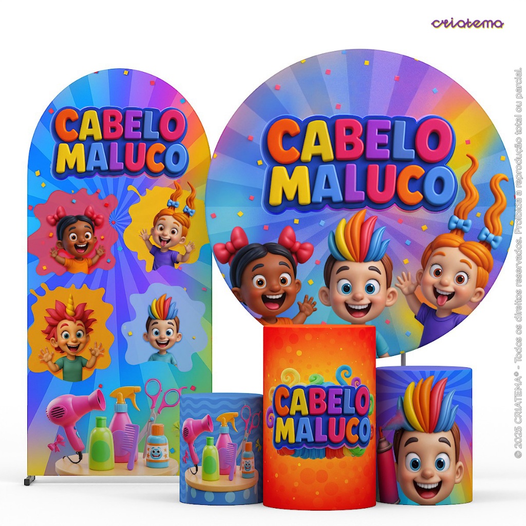 Decoração Dia das Crianças: Capas e Painel Dia das Crianças Festa Cabelo Maluco Sublimado Em Tecido
