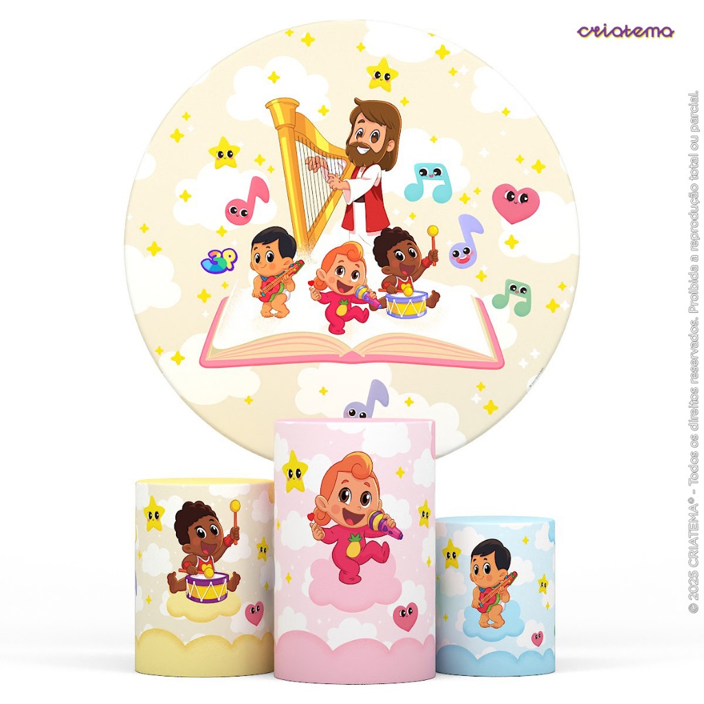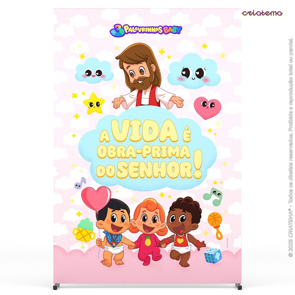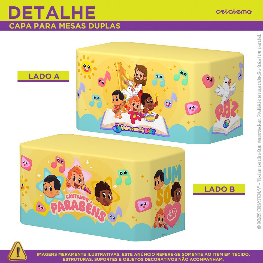Decoração Festa 3 Palavrinhas: Painel 3 Palavrinhas E Cilindro de Festa Aniversário Tecido Sublimado