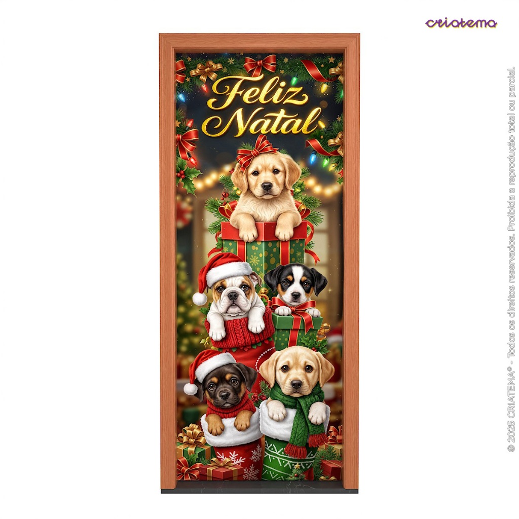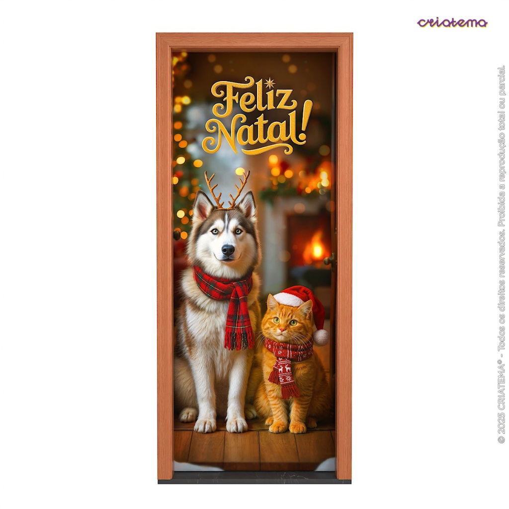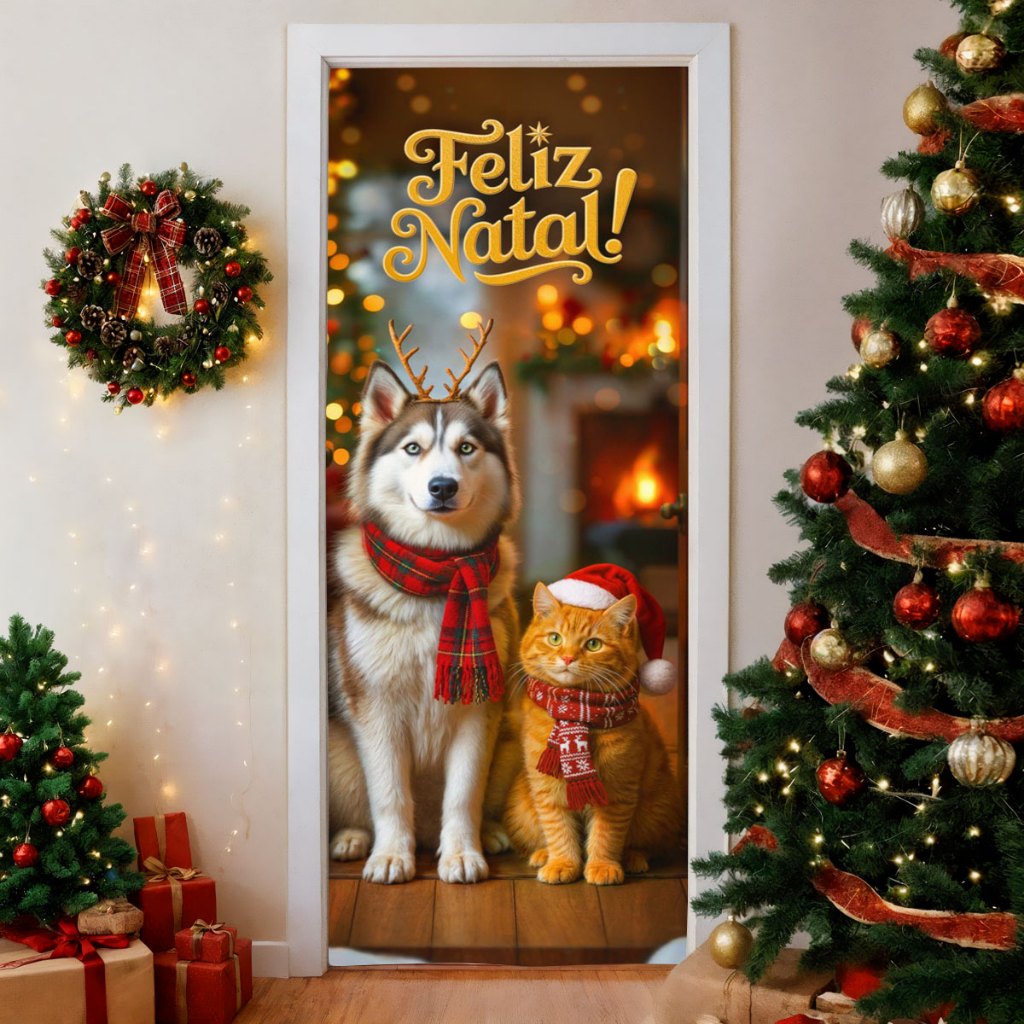 Capa De Porta Decoração de Natal para Pet Shop Em Tecido Veste Porta Sublimado 0,85x2,10m