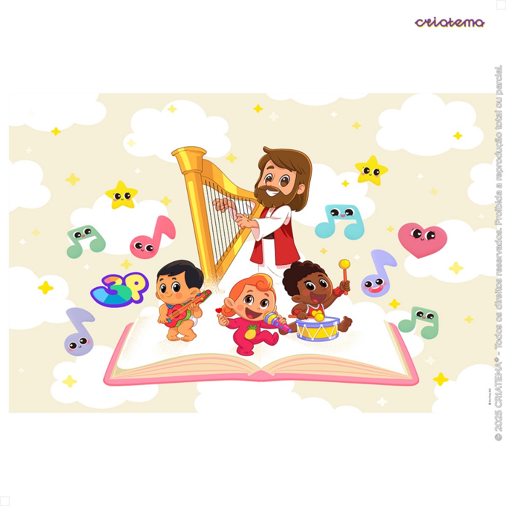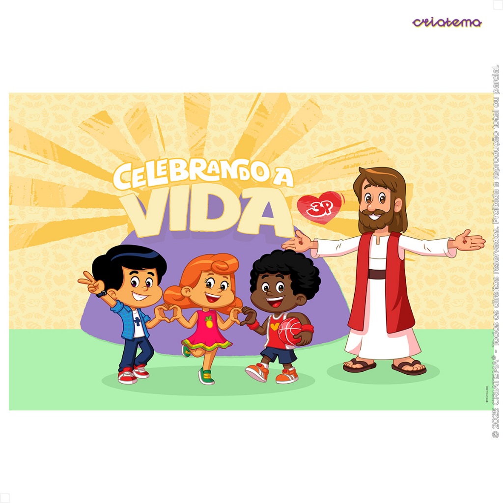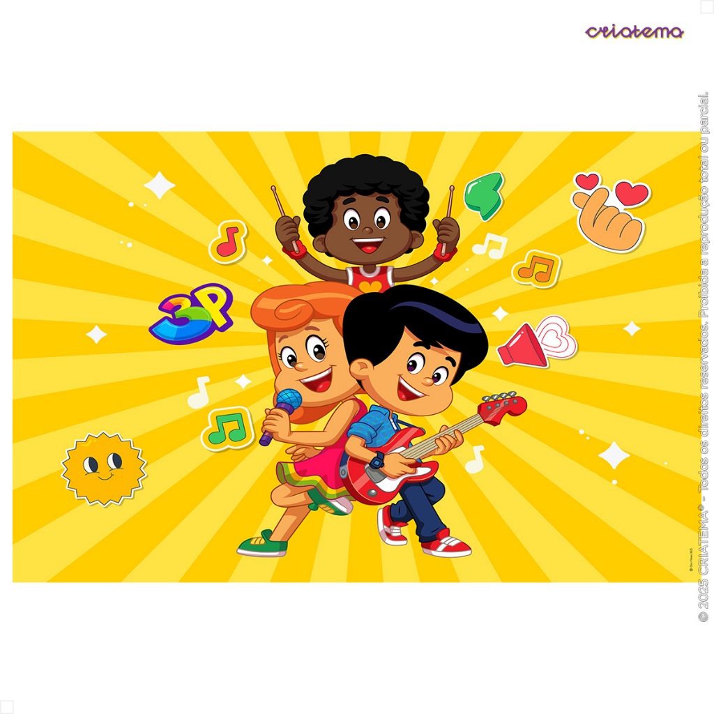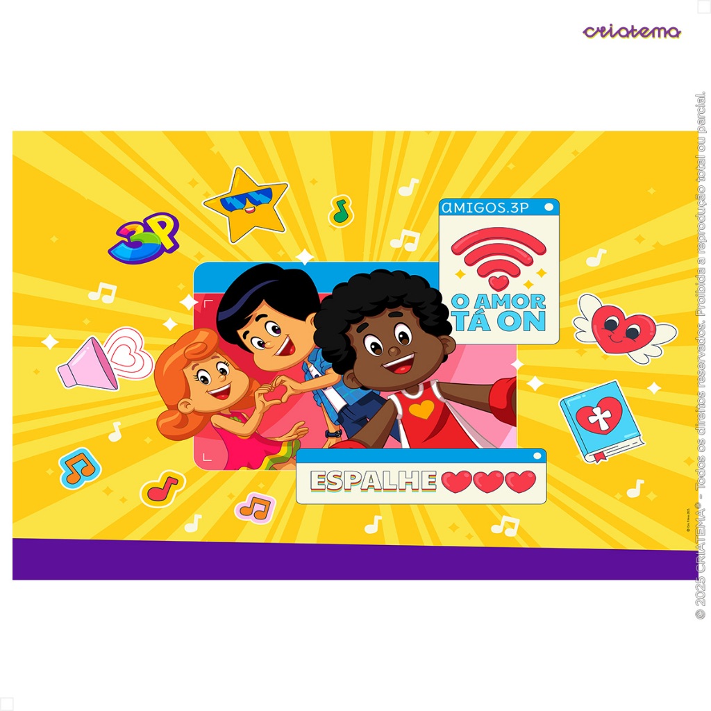 Painel de Festa 3 Palavrinhas Decoração Retangular Horizontal Em Tecido Sublimado - Licenciado