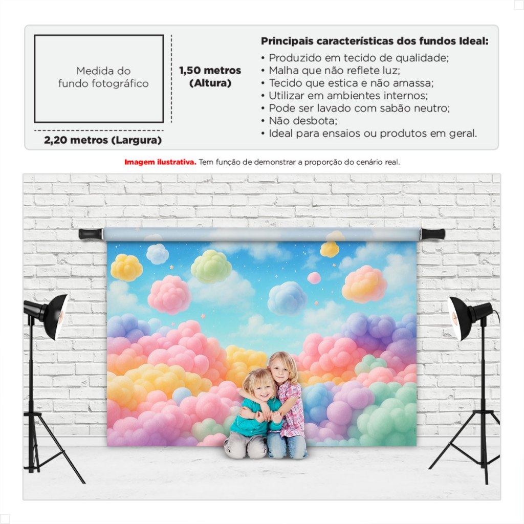 Fundo Fotográfico Dia das Crianças Nuvens Painel para Foto Infantil Tecido Sublimado - C-705