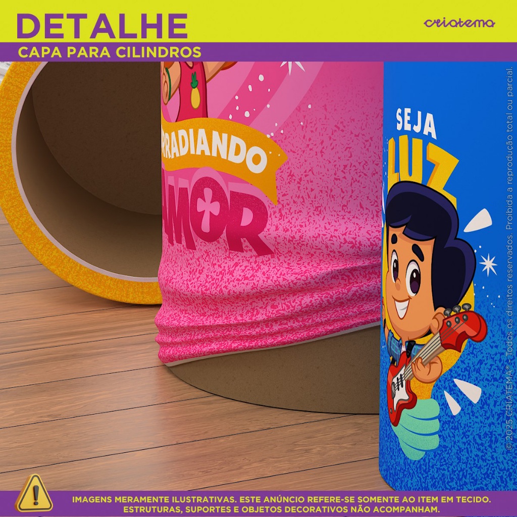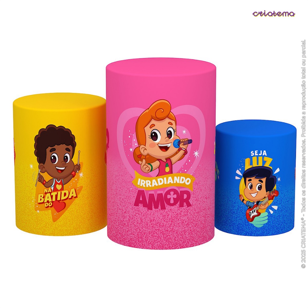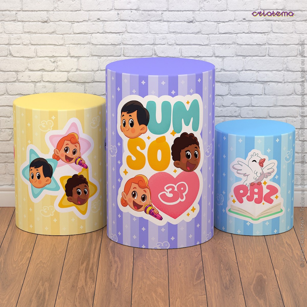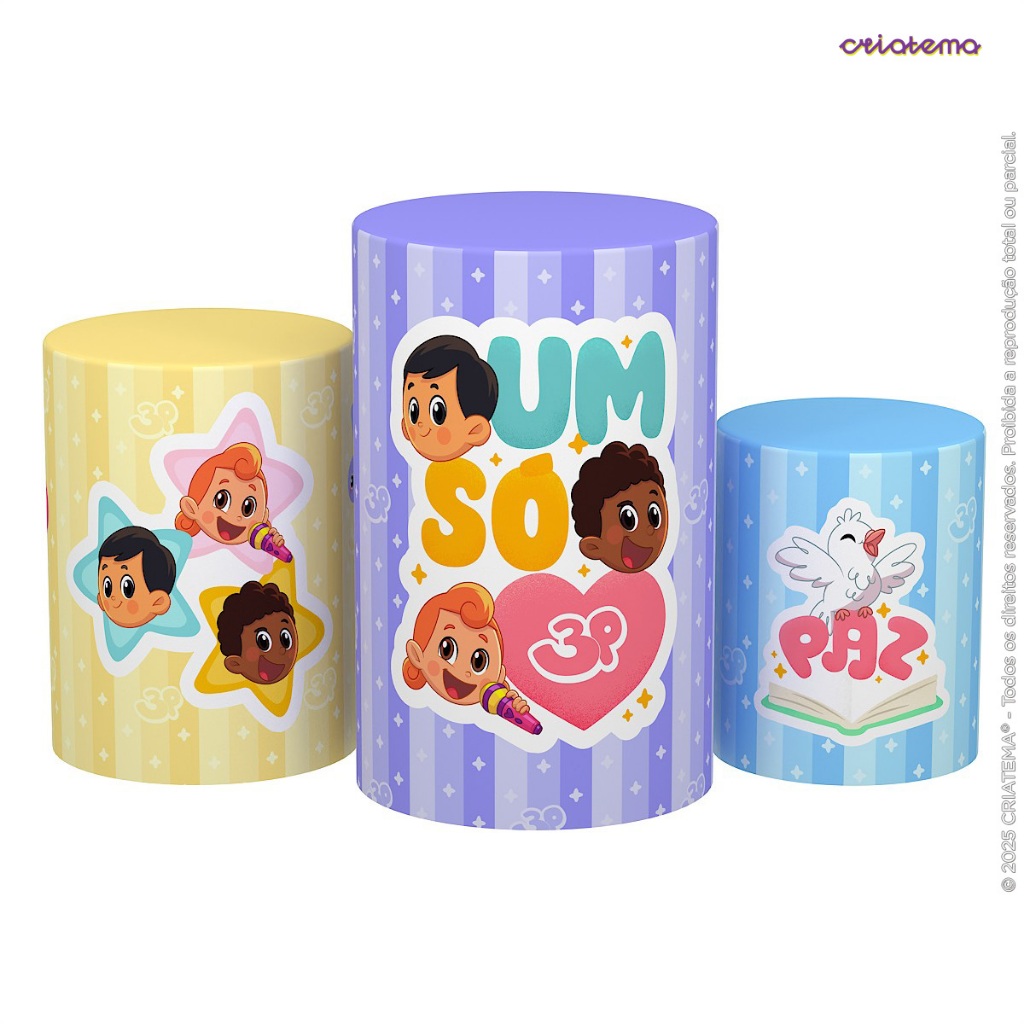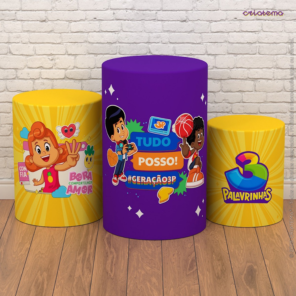 Capa Cilindro de Festa Decoração 3 Palavrinhas Sublimado Tecido Trio C/Elástico Veste Fácil - Licenciado