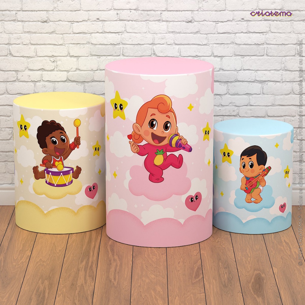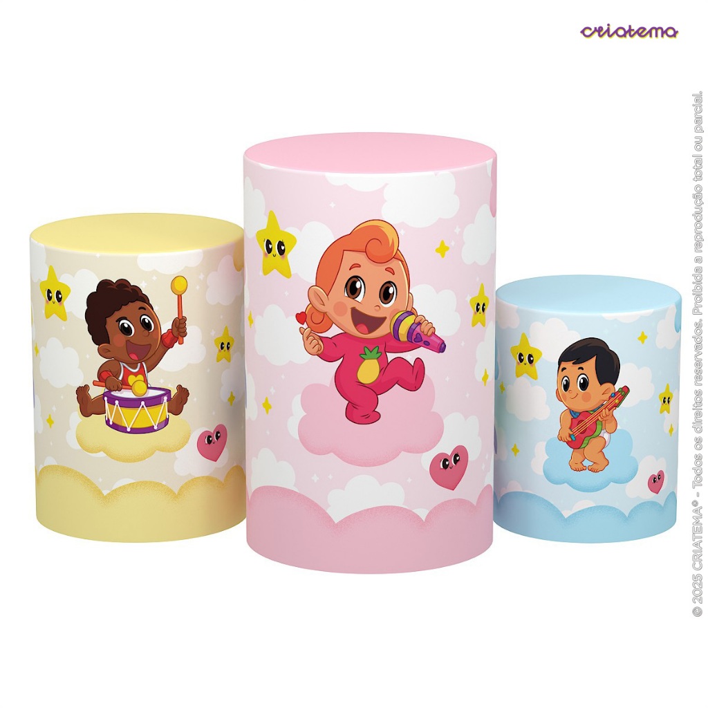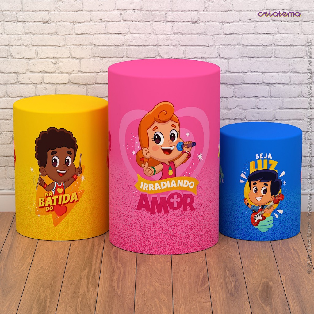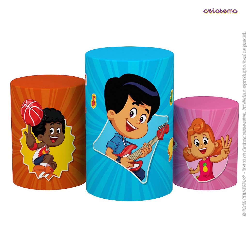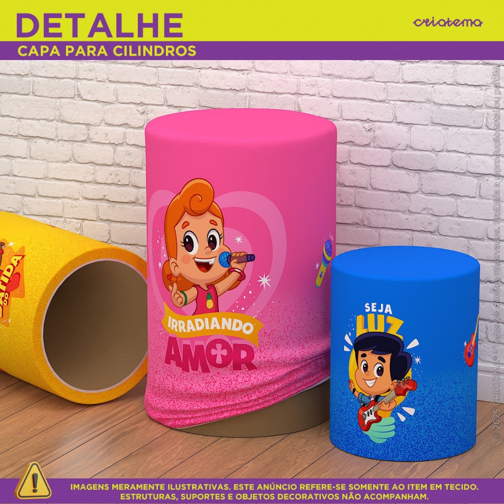 Capa Cilindro de Festa Decoração 3 Palavrinhas Sublimado Tecido Trio C/Elástico Veste Fácil - Licenciado