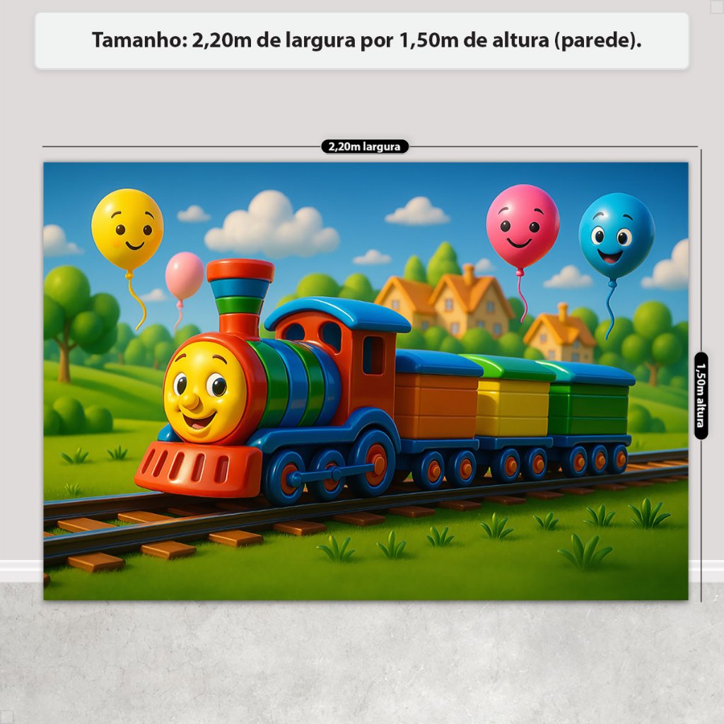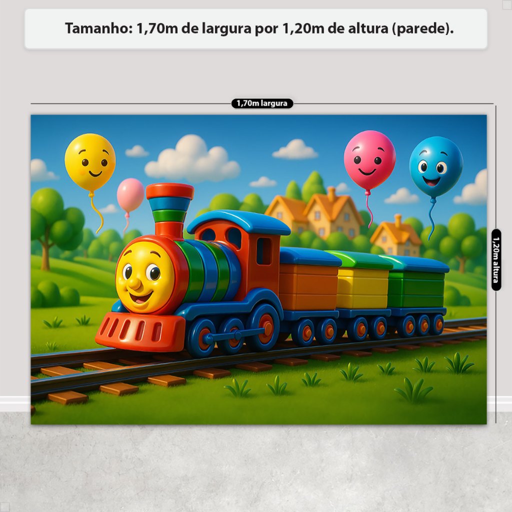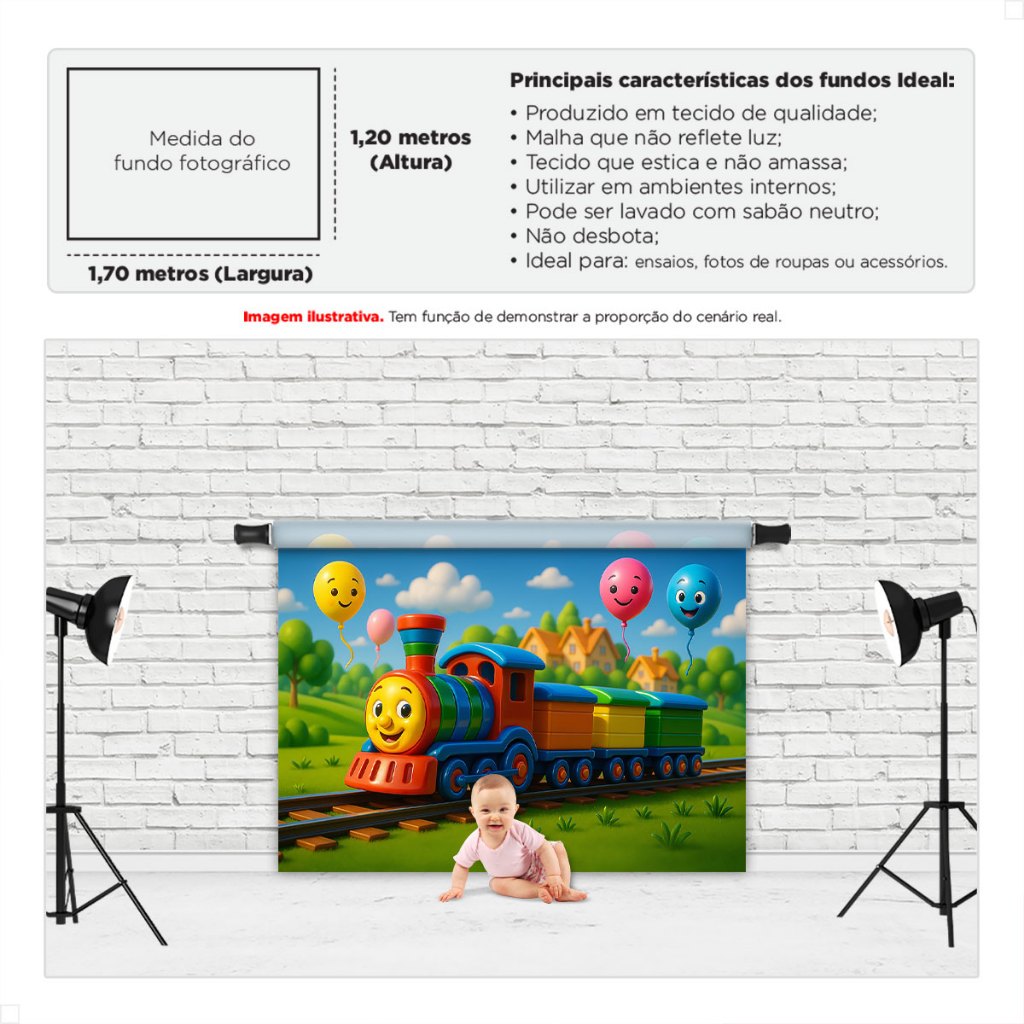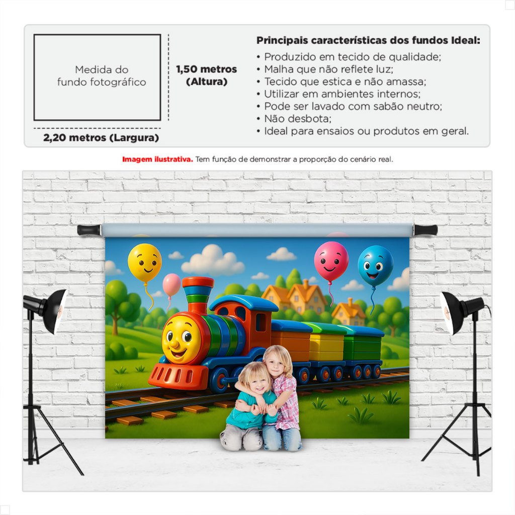Fundo Fotográfico Dia das Crianças Trenzinho para Foto Infantil Painel Tecido Sublimado- C-704