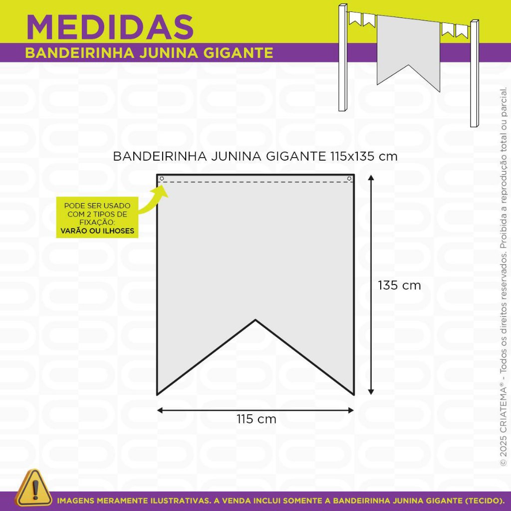 Bandeira Festa Junina Tecido 1,15x1,35m Gigante Estandarte Decoração Arraiá Sublimado