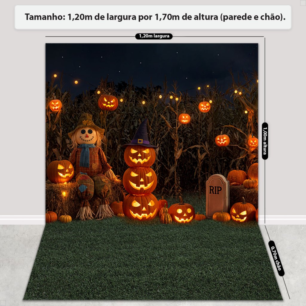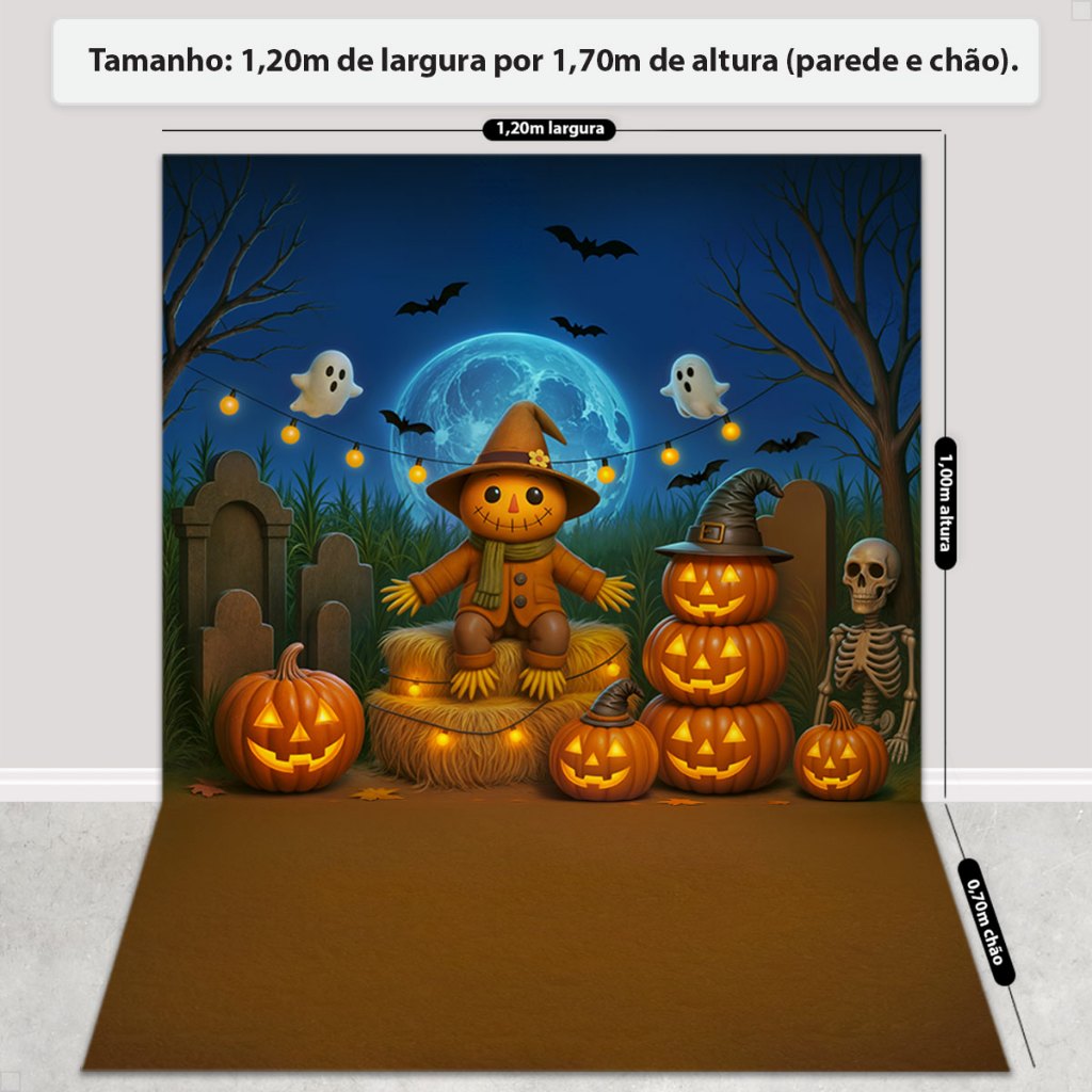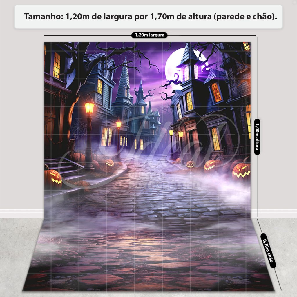 Painel Fundo Fotográfico Halloween Decoração Dia das Bruxas 3D Cenário Em Tecido Sublimado 1,20x1,70m