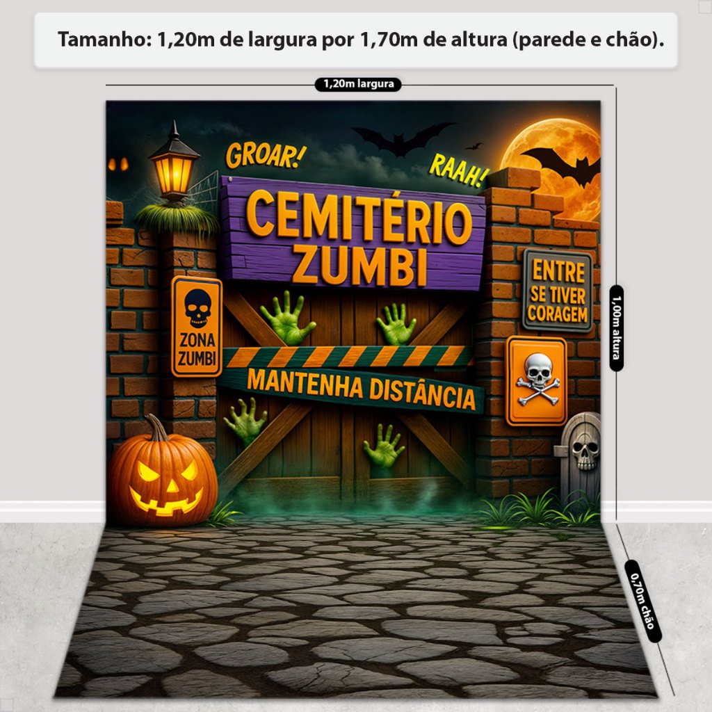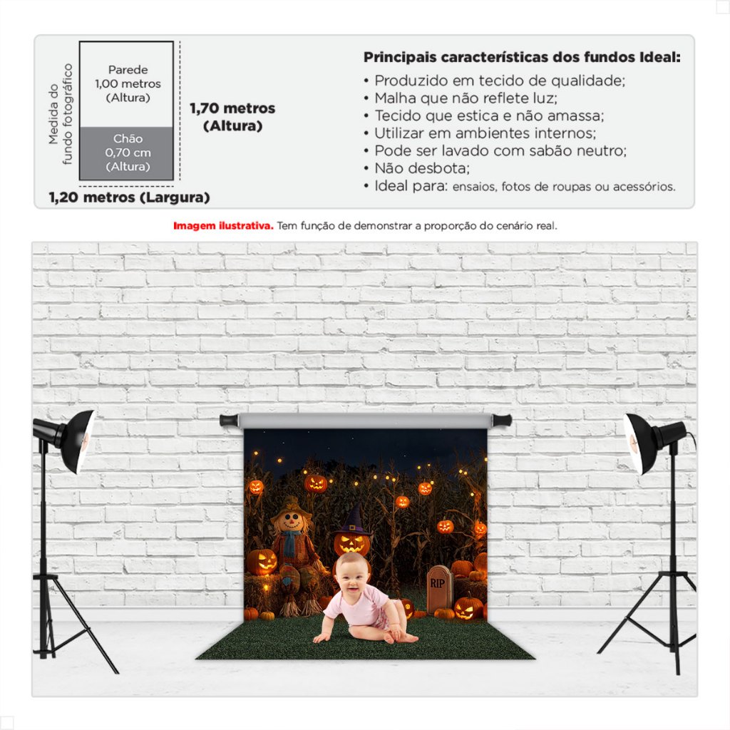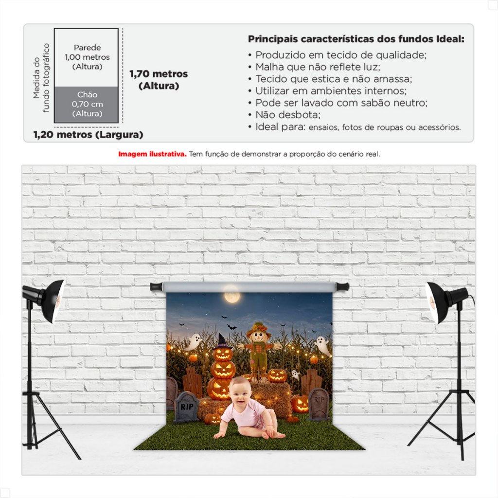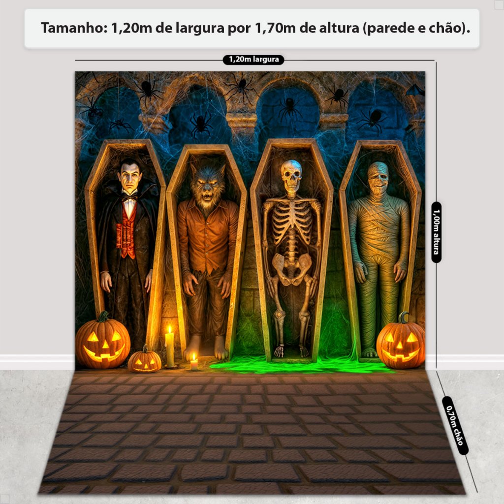 Painel Fundo Fotográfico Halloween Decoração Dia das Bruxas 3D Cenário Em Tecido Sublimado 1,20x1,70m