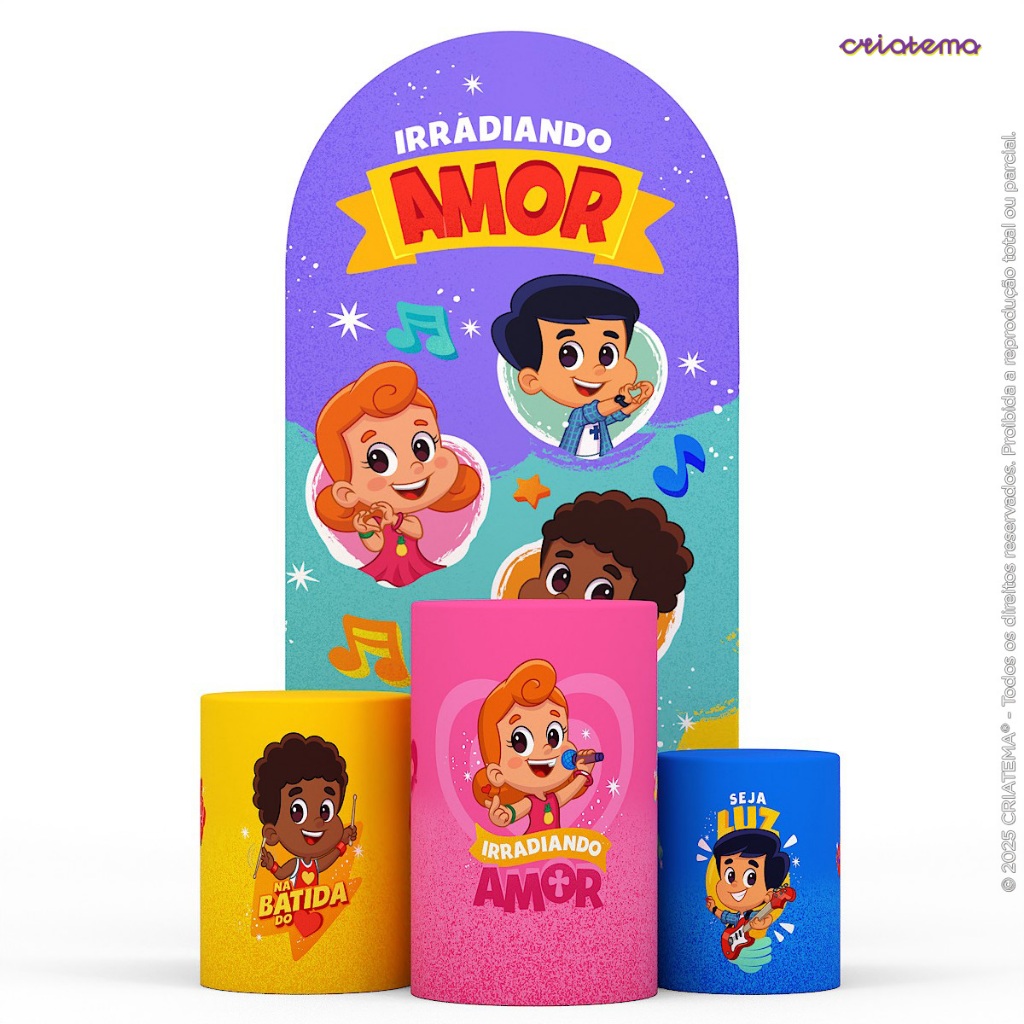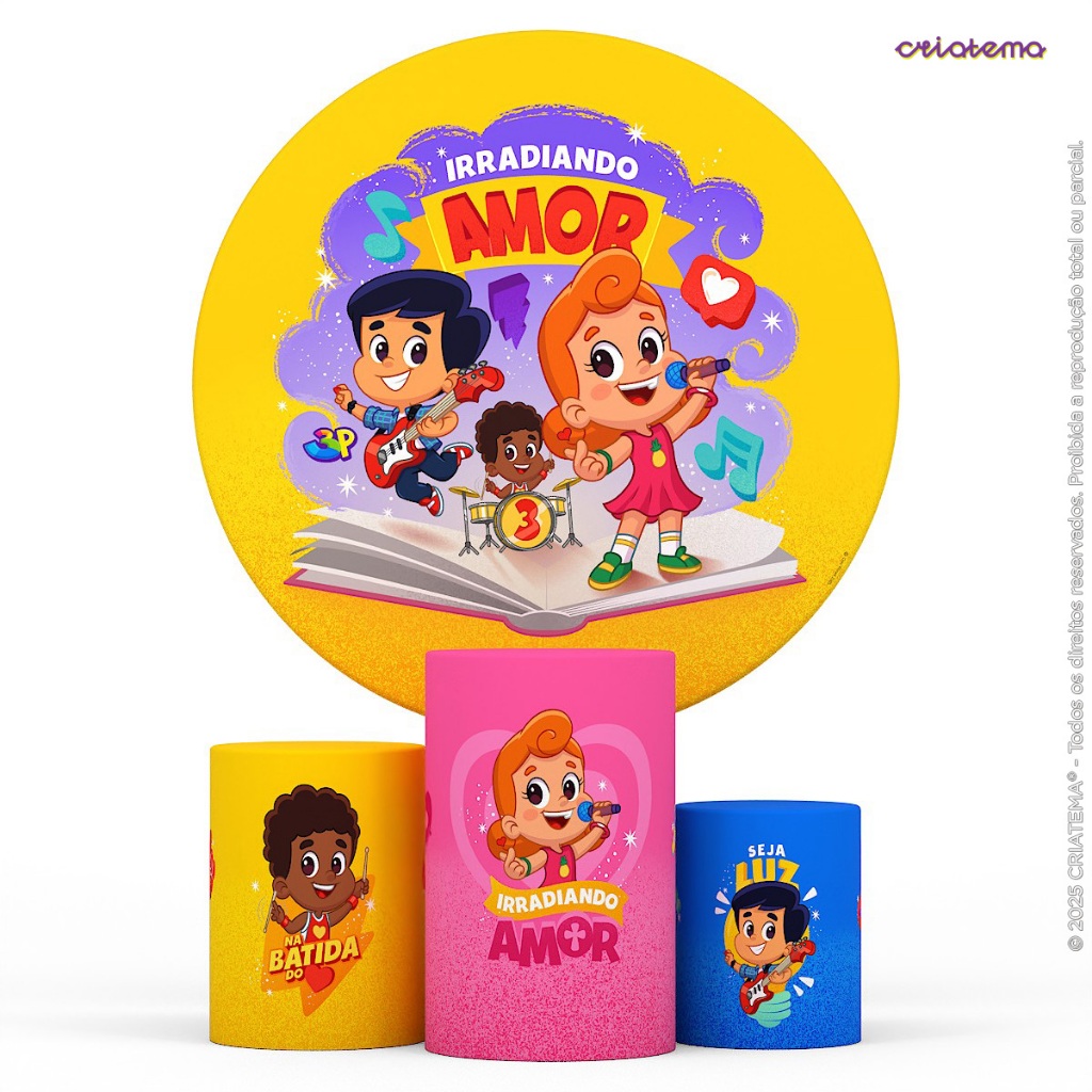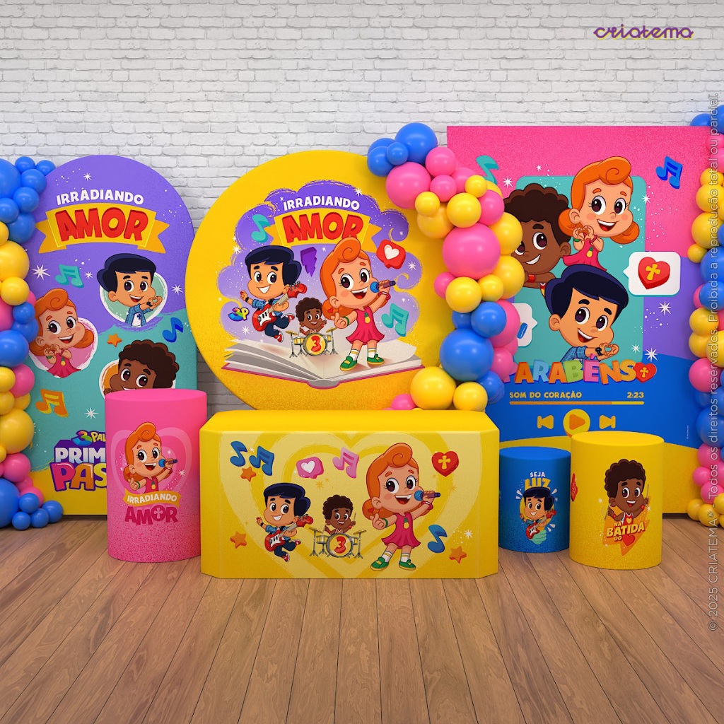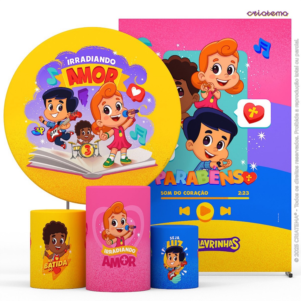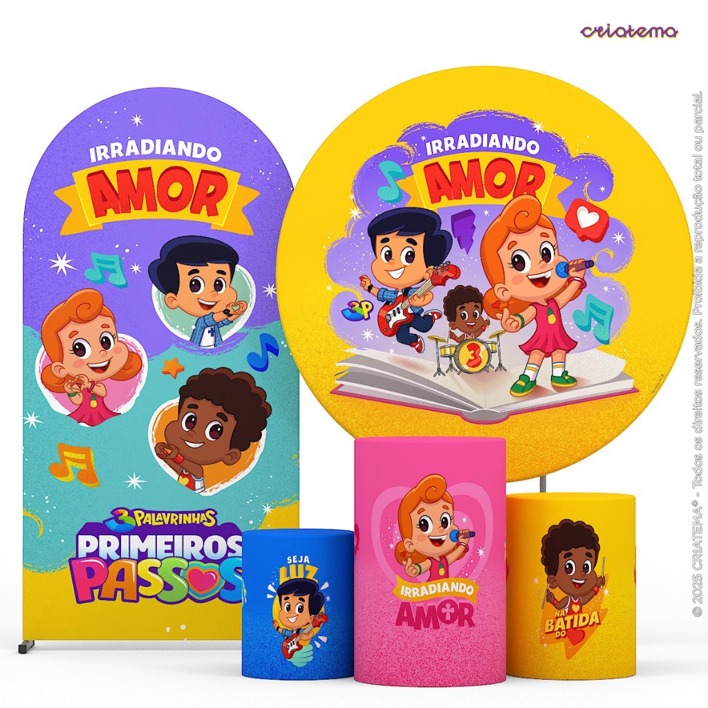 Decoração Festa 3 Palavrinhas: Capa Cilindro E Painéis 3 Palavrinhas Decorativa Sublimado Em Tecido