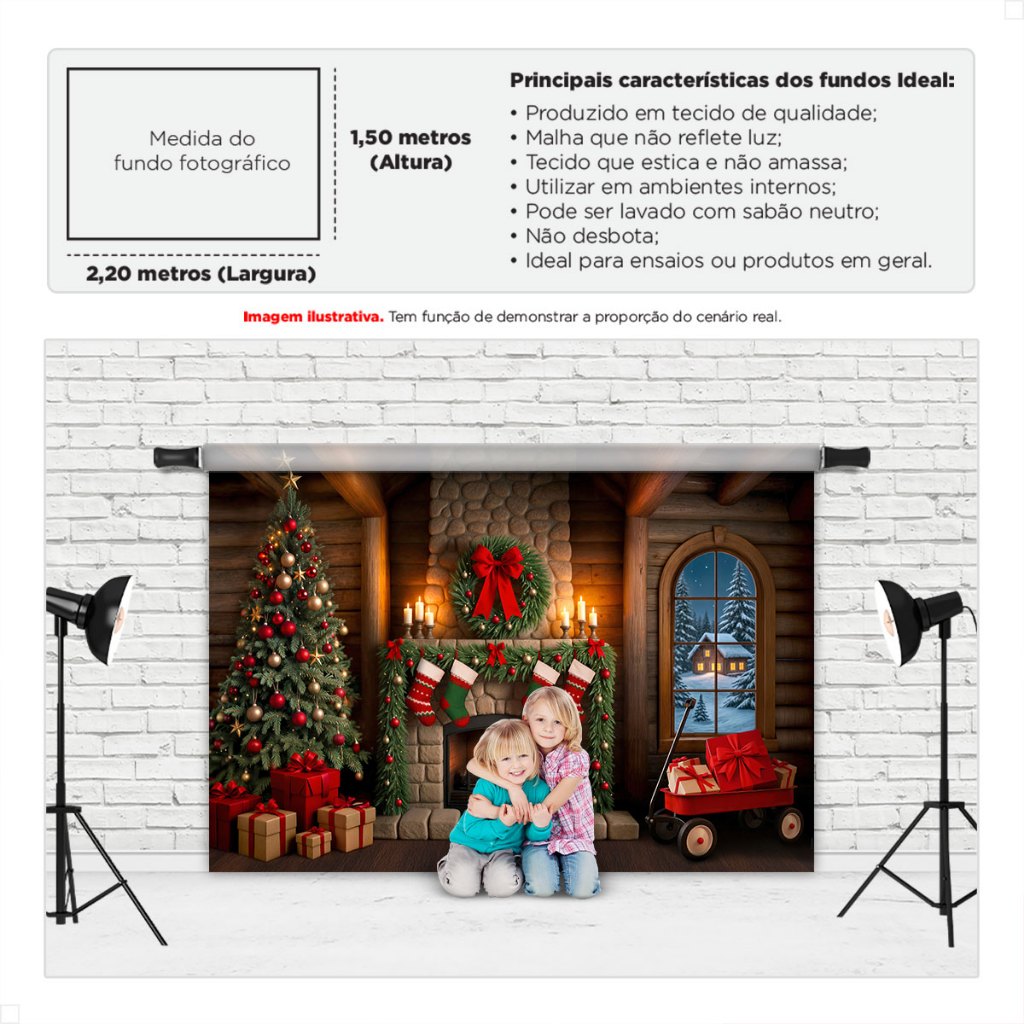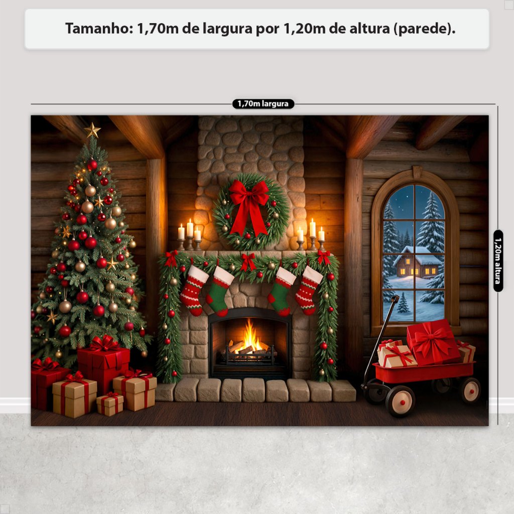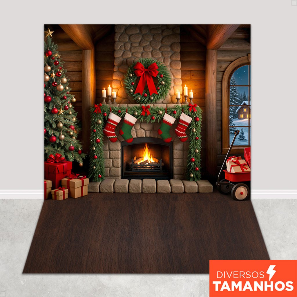 Painel Fundo Fotográfico Natal Decoração Cenário Lareira Rústica Em Tecido Sublimado – FNT-822