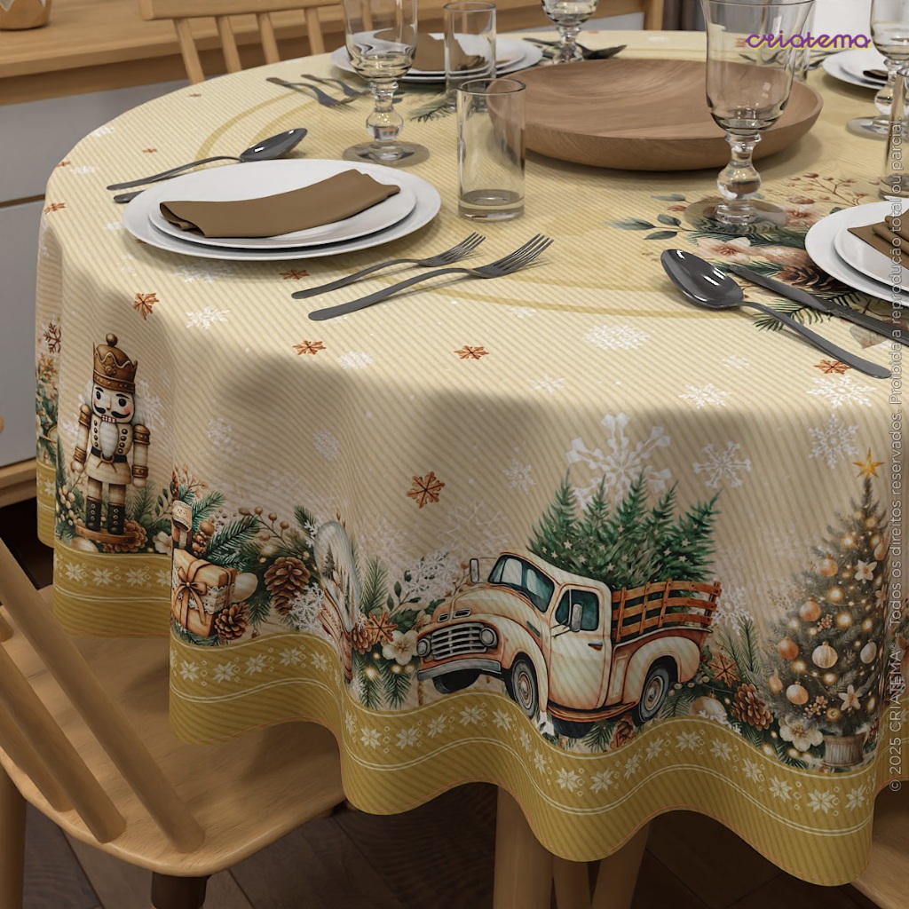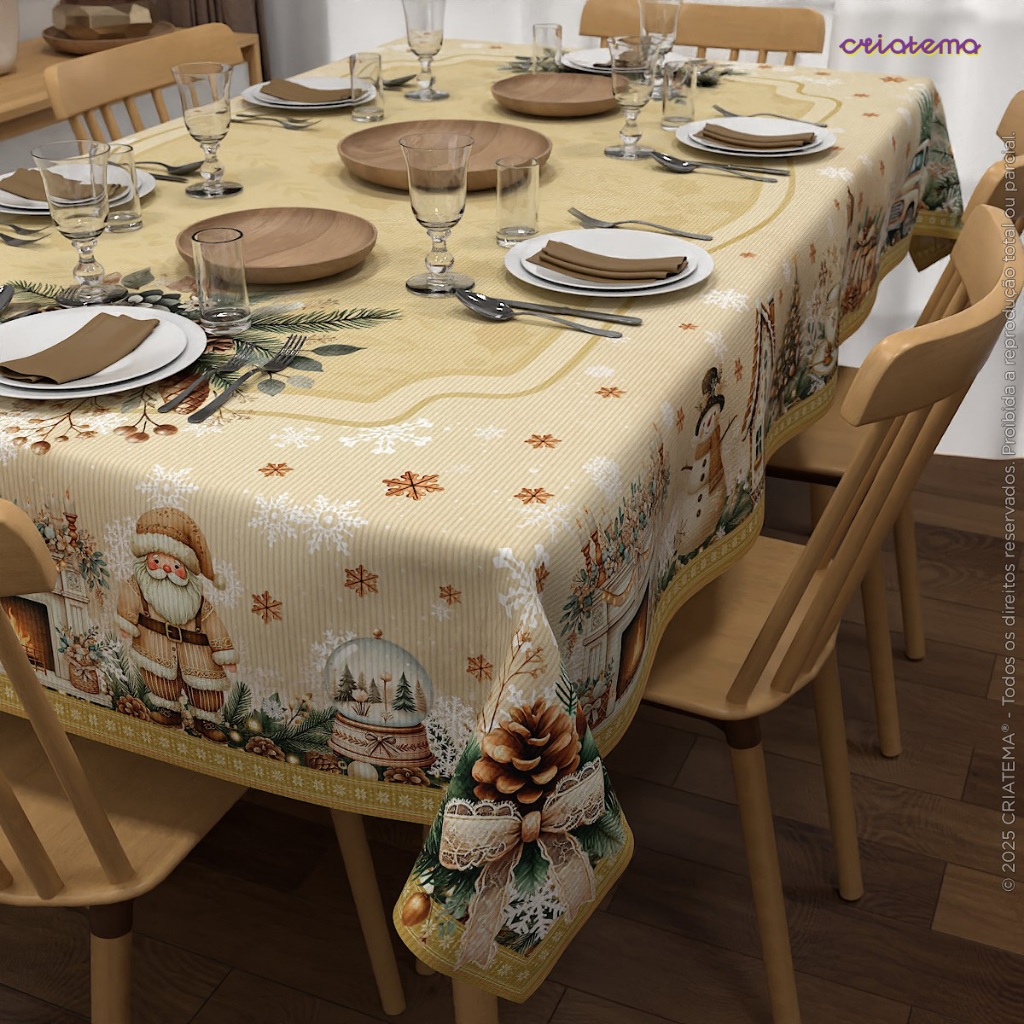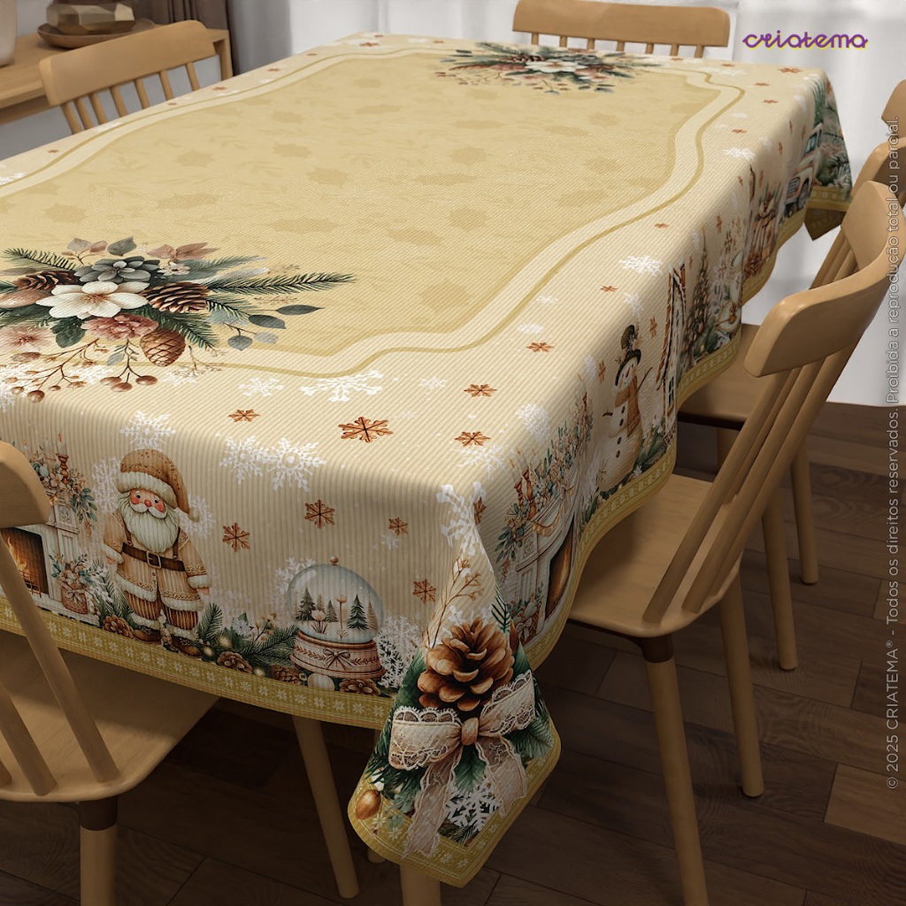 Toalha de Mesa Natal Dourado E Caminho de Mesa Natalino Oxford – Vários Modelos para Mesa Posta