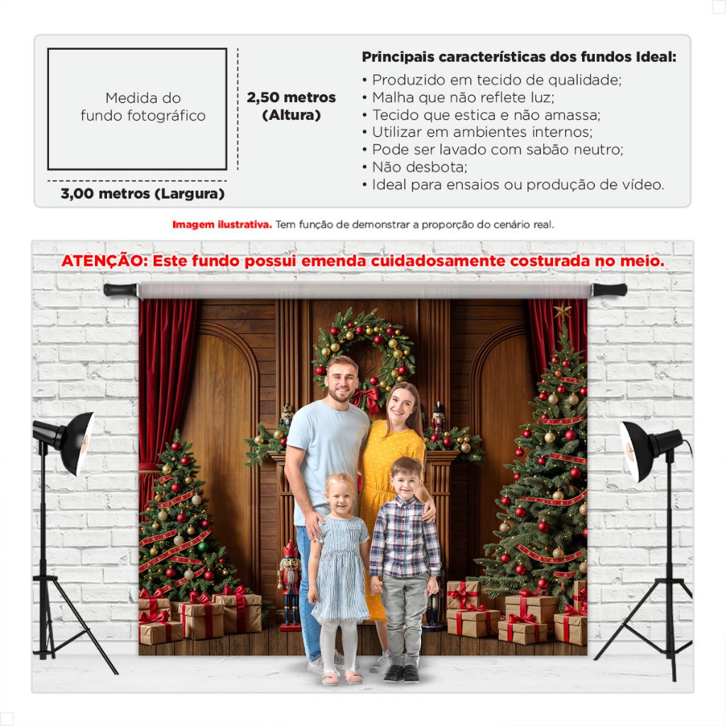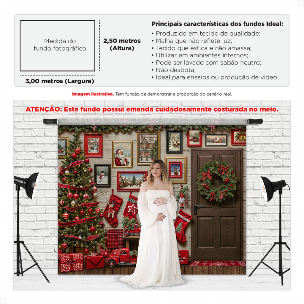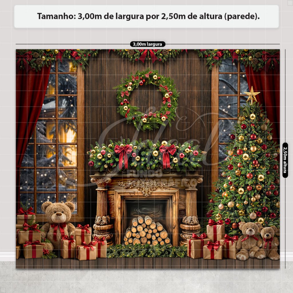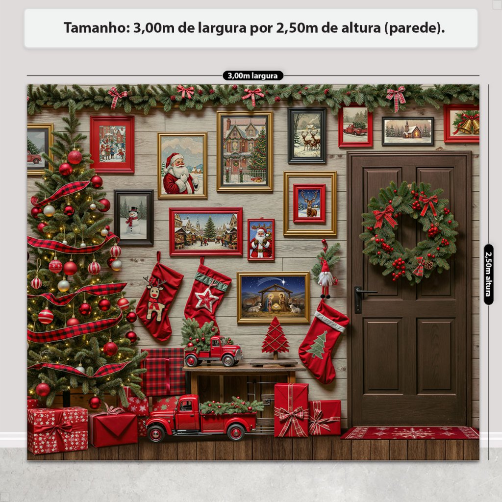 Painel Fundo Fotografico de Natal Grande Cenário para Fotos Gigante Em Tecido Sublimado 3,00x2,50m