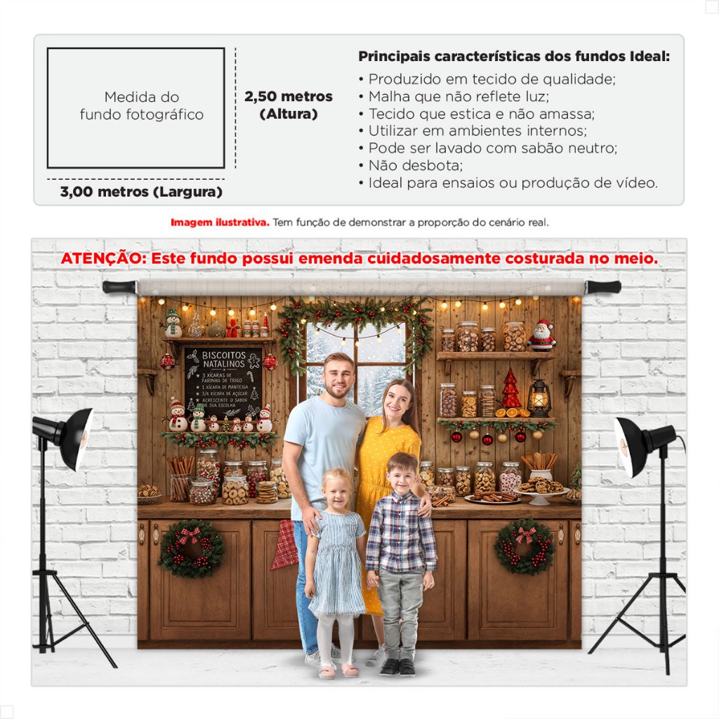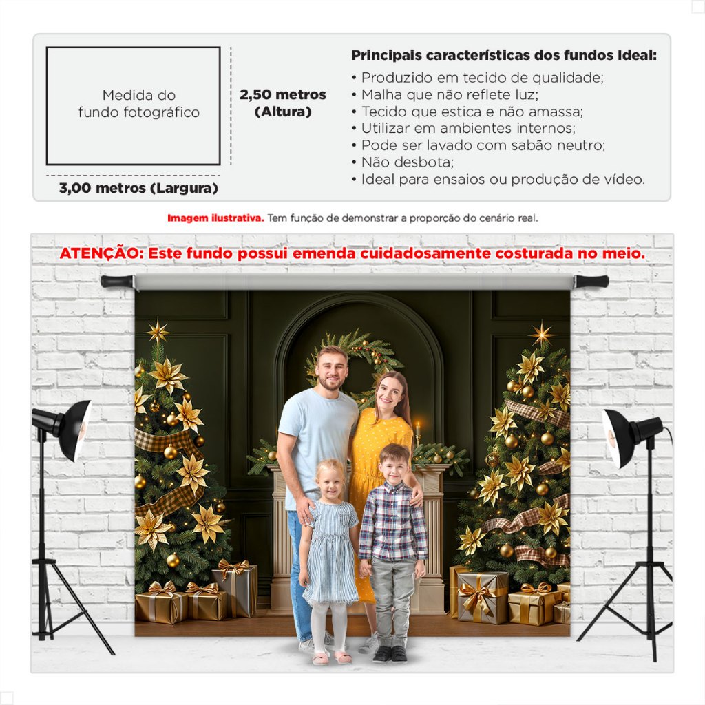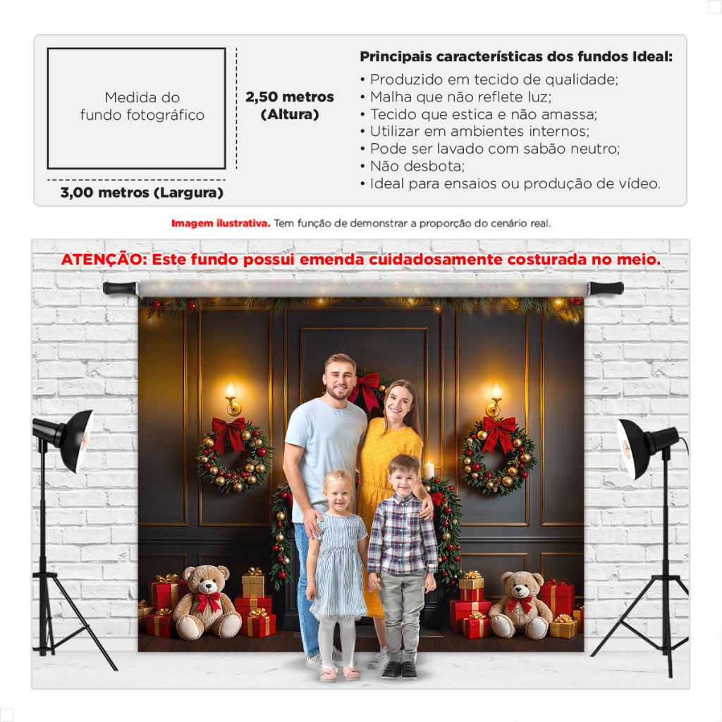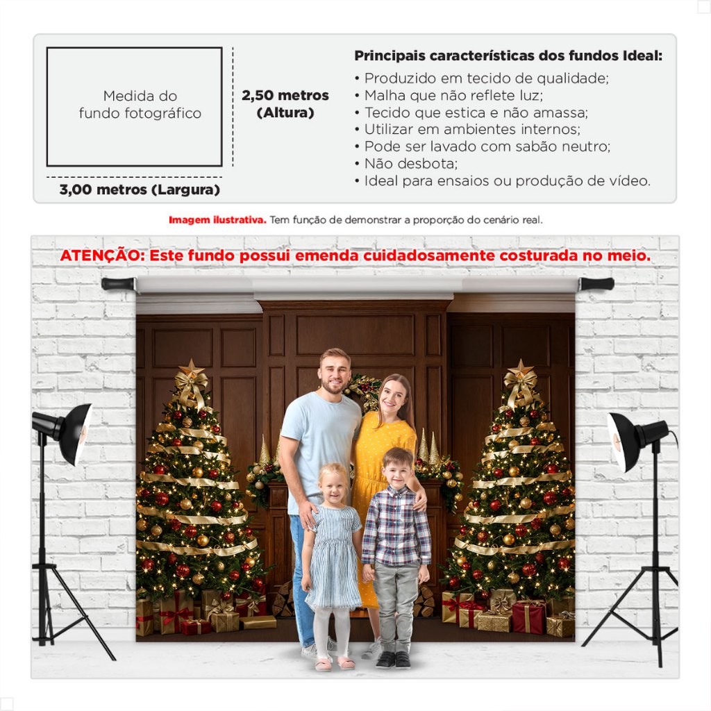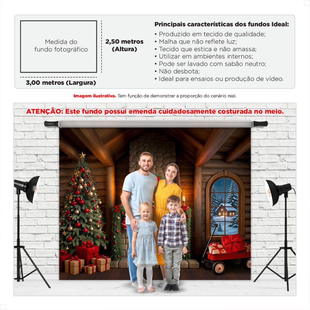Painel Fundo Fotografico de Natal Grande Cenário para Fotos Gigante Em Tecido Sublimado 3,00x2,50m