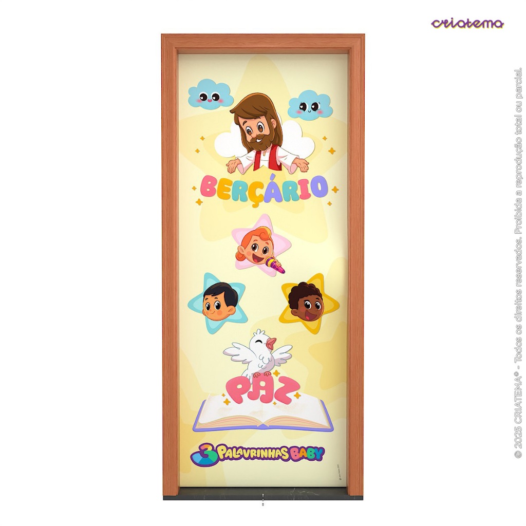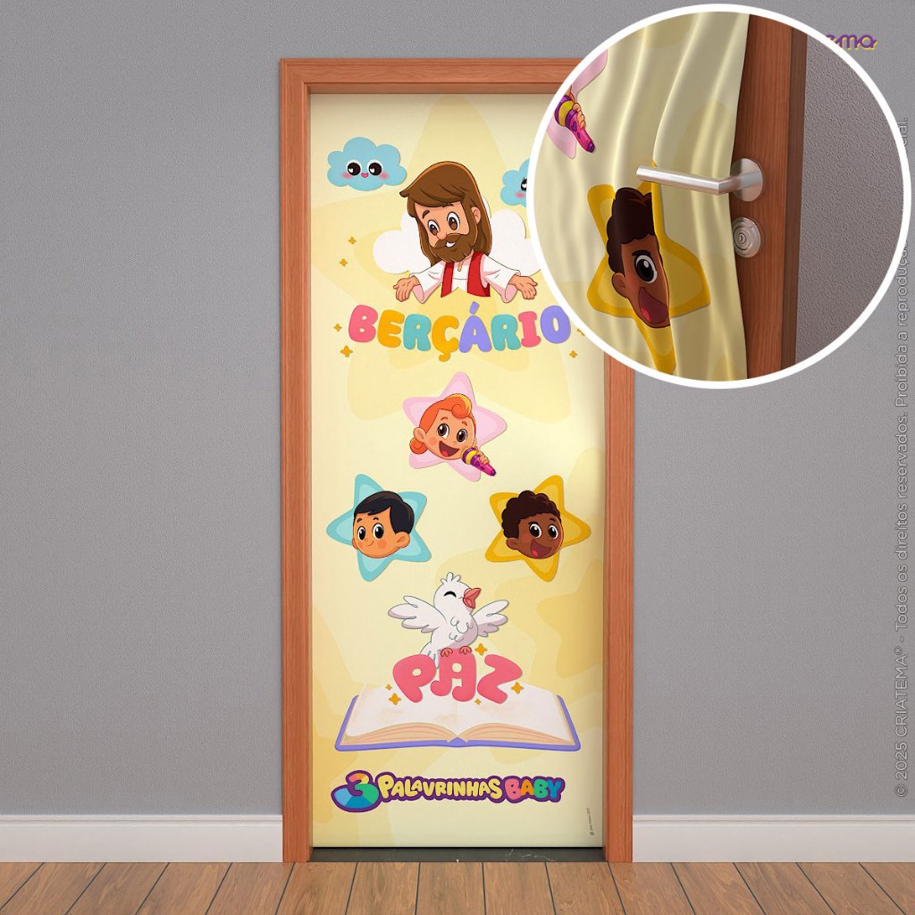 Capa de Porta Decoração 3 Palavrinhas 0,85x2,10m Sublimada com Elástico Veste Fácil - Licenciado