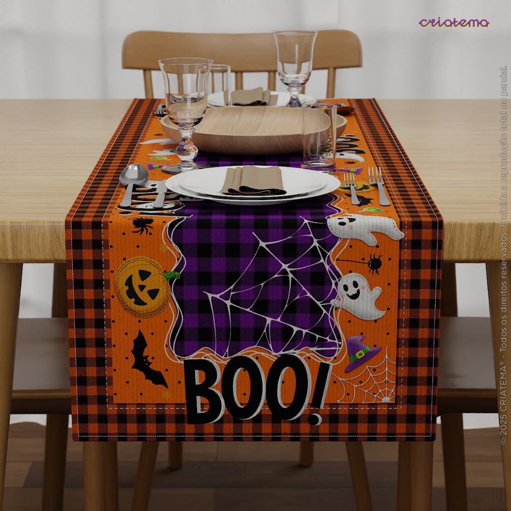 Decoração Halloween: Toalha de Mesa e Capa de Almofada Halloween Oxford Em Tecido Sublimado