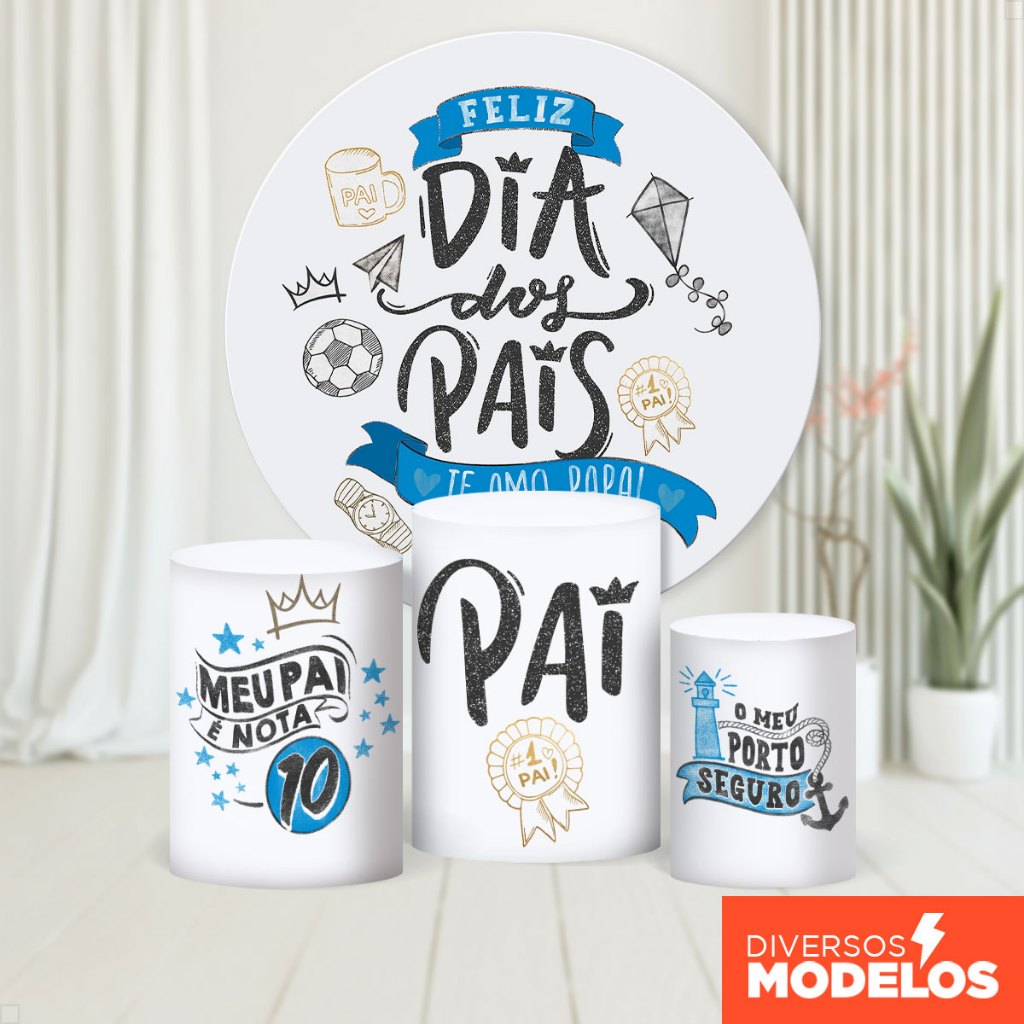 Trio Capa Cilindro E Painel Redondo Dia dos Pais Sublimado Veste Fácil C/Elástico - Vários Modelos