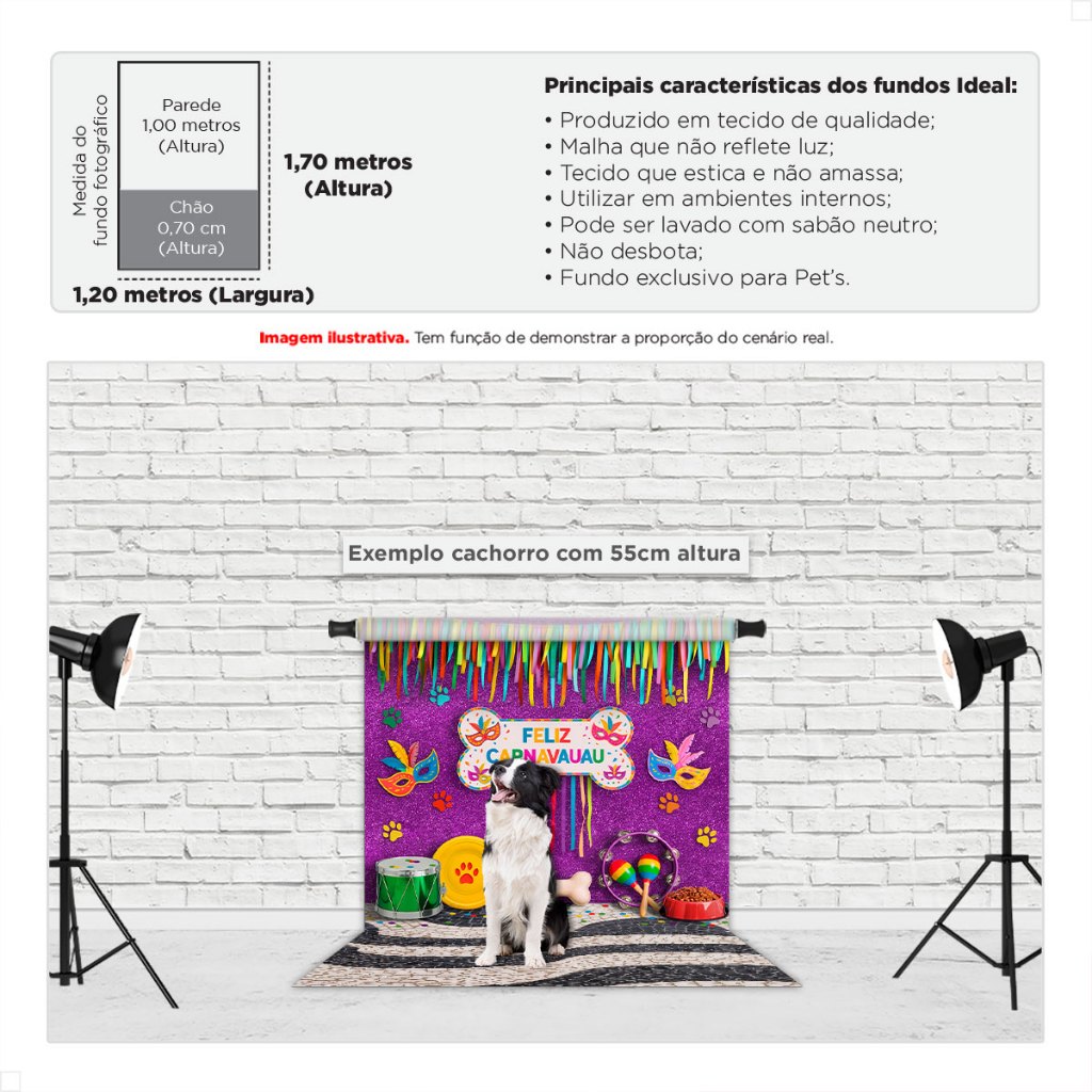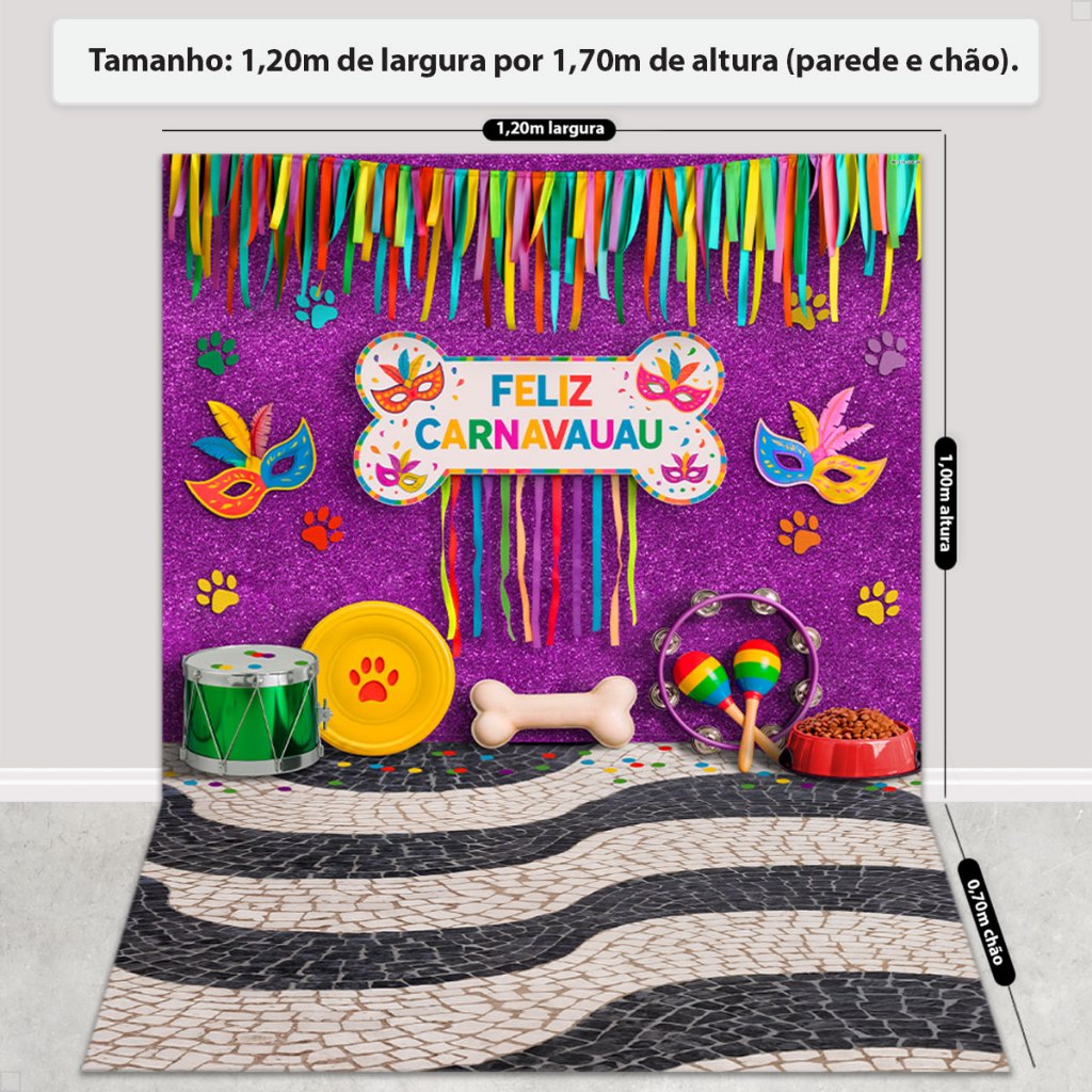 Painel Fundo Fotográfico Pet Carnaval 1,20x1,70m Cenário Em Tecido Sublimado 3D
