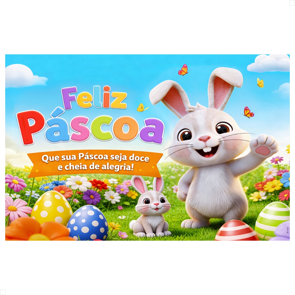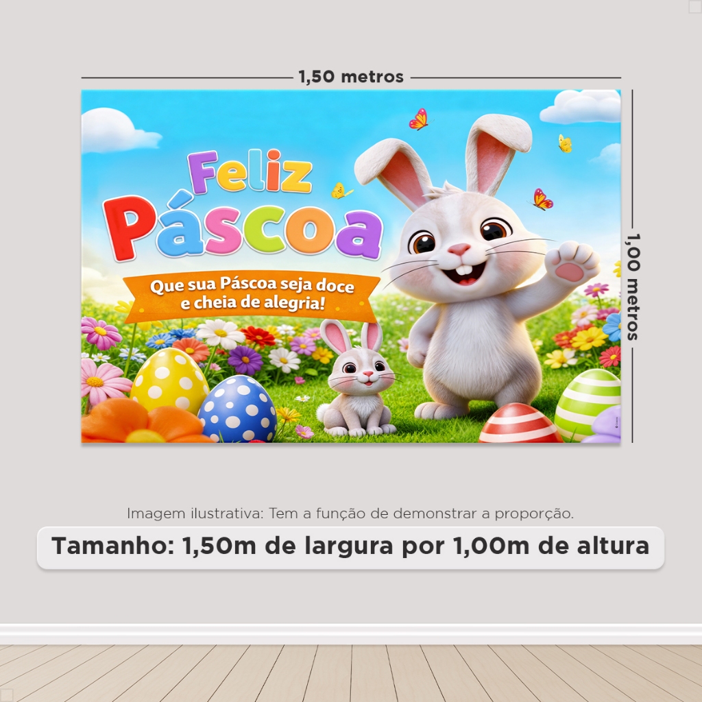 Painel de Festa Horizontal Páscoa Decorativo Retangular Sublimado Em Tecido