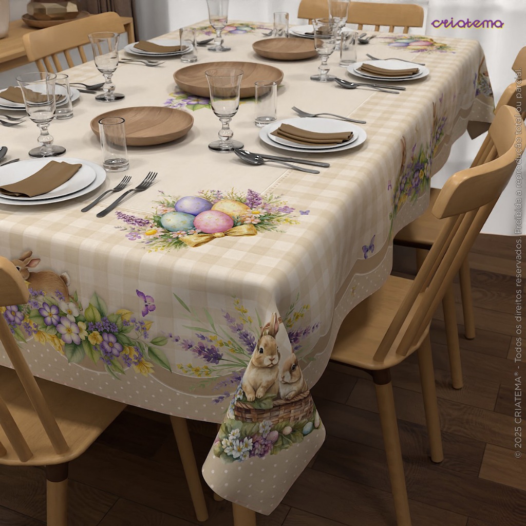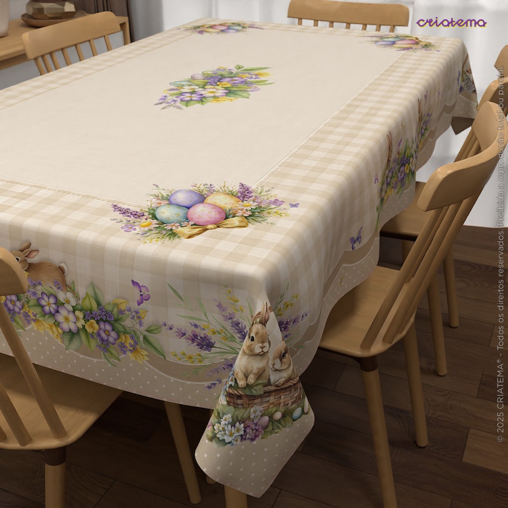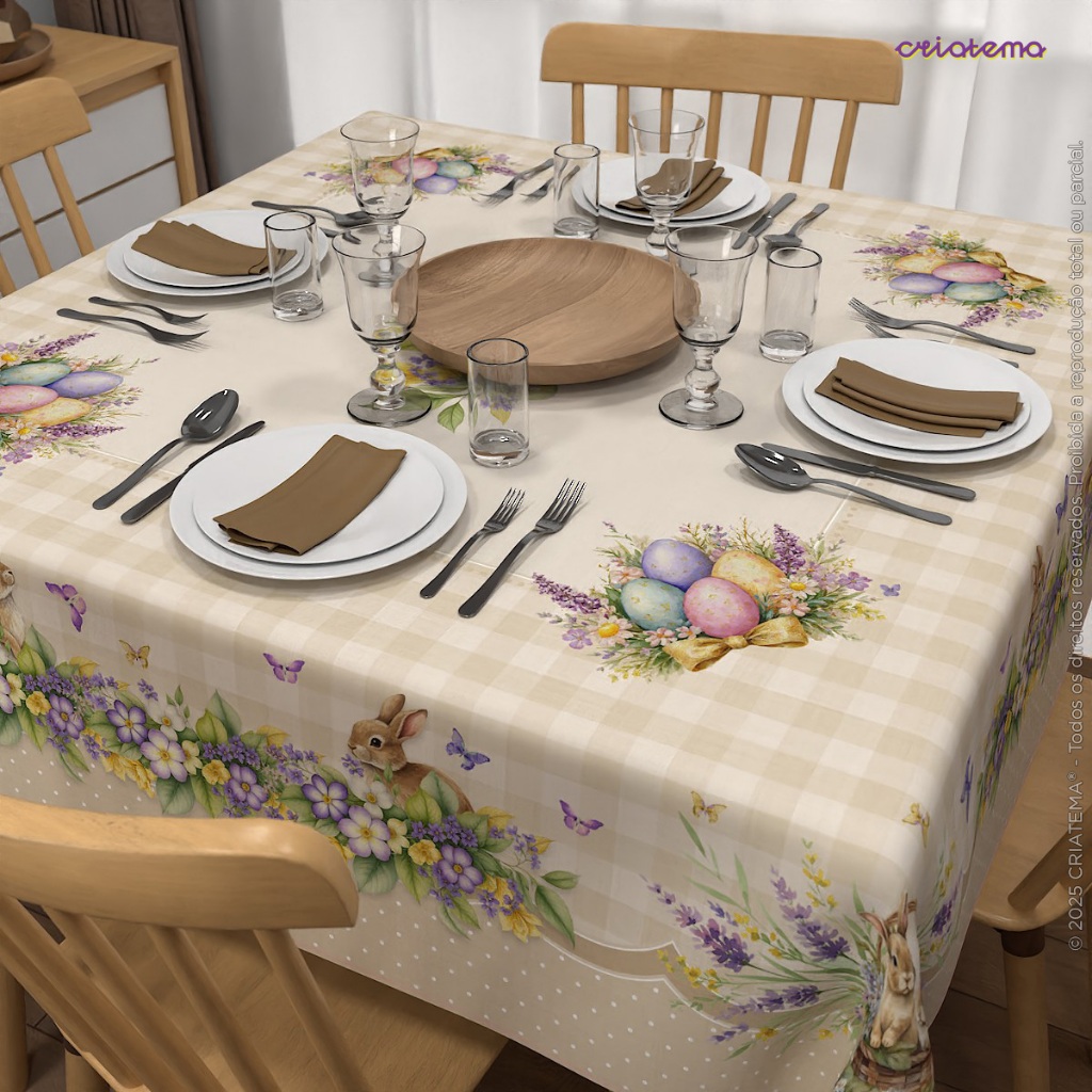 Toalha de Mesa Decoração Páscoa Floral Em Oxford Com Diversos Tamanhos – Mesa Posta