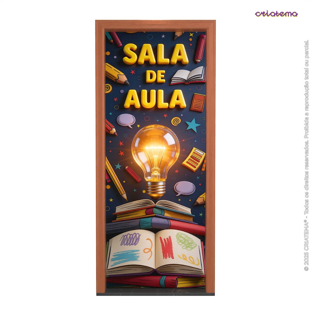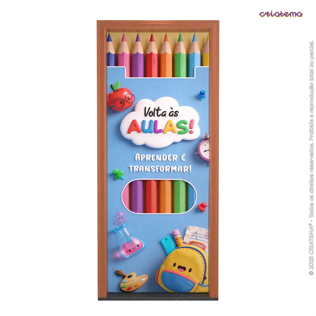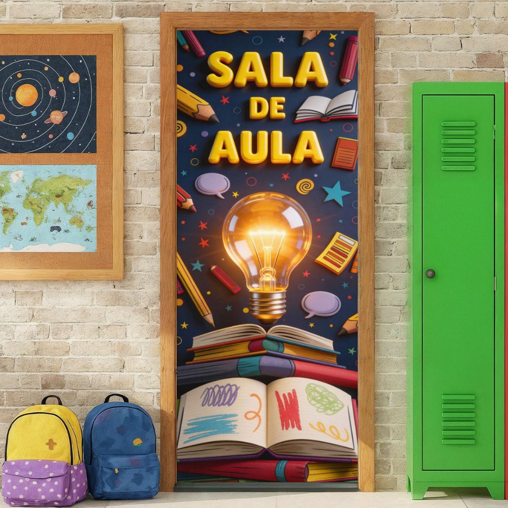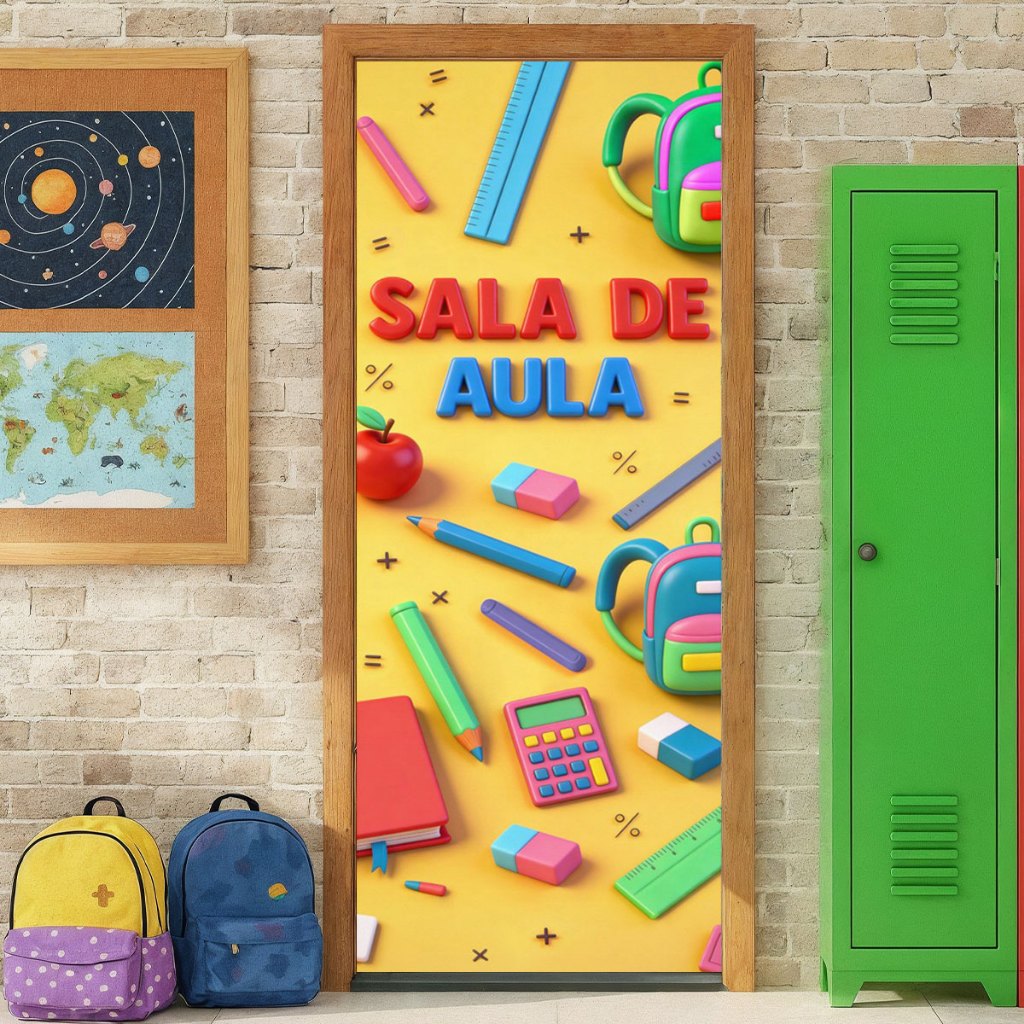 Capa De Porta Decorativa Escolar Sala de Aula Volta às Aulas Em Tecido Com Elástico 0,85x2,10m Veste Fácil