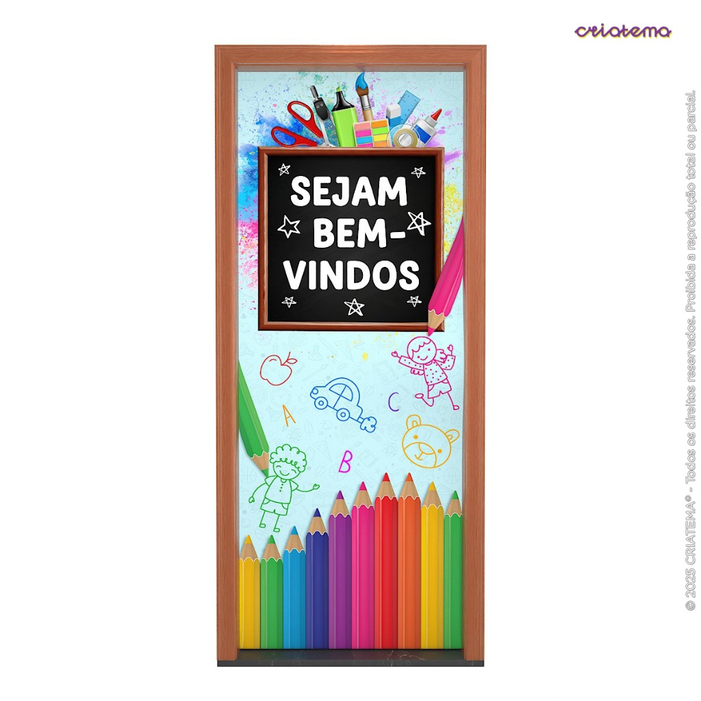 Capa de Porta Decoração Bem-Vindos Decoração Sala de Aula Sublimado Em Tecido 0,85x2,1m Veste Fácil