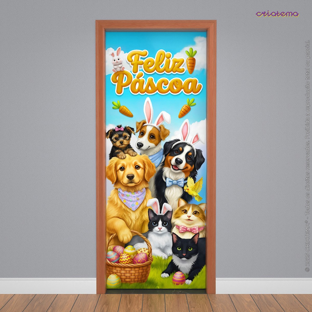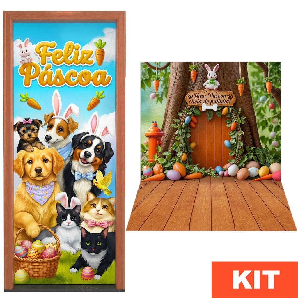 Kit Capa de Porta Páscoa + Fundo Fotográfico Pet Em Tecido Sublimado - Decoração Pet Shop