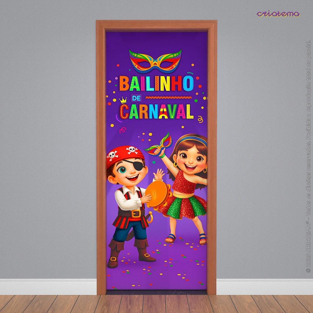 Capa de Porta Decorativa Escolar Bailinho de Carnaval Sublimada Em Tecido Retangular C/ Elástico