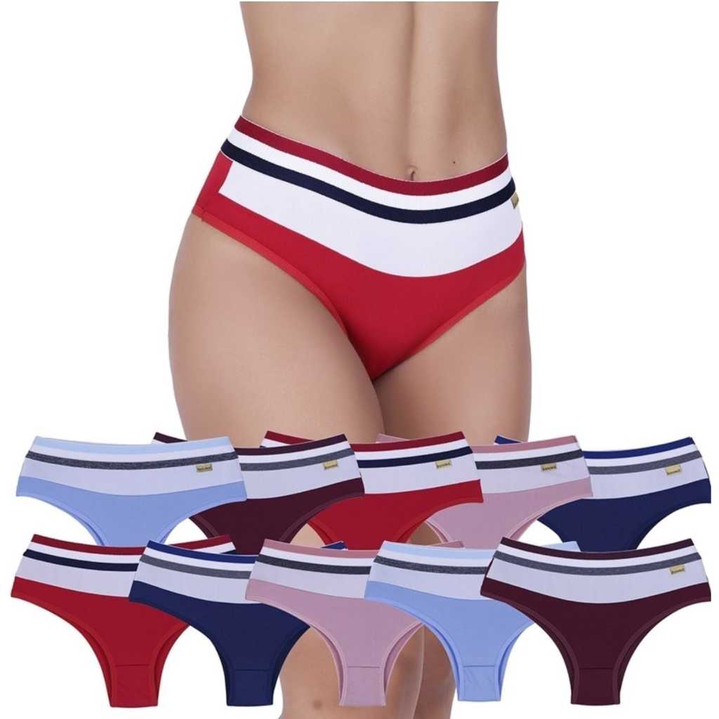Kit 10 Calcinhas Cintura Alta Com Elástico Forro 100% Algodão Cós Alto Arco Íris