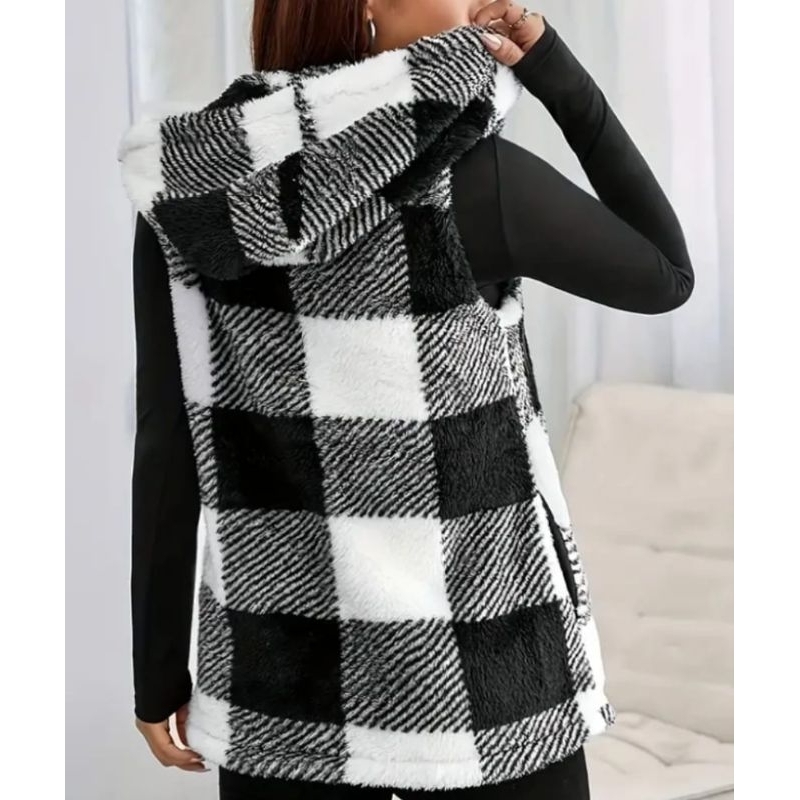 Colete Xadrez Feminina Sem Manga Com Capuz